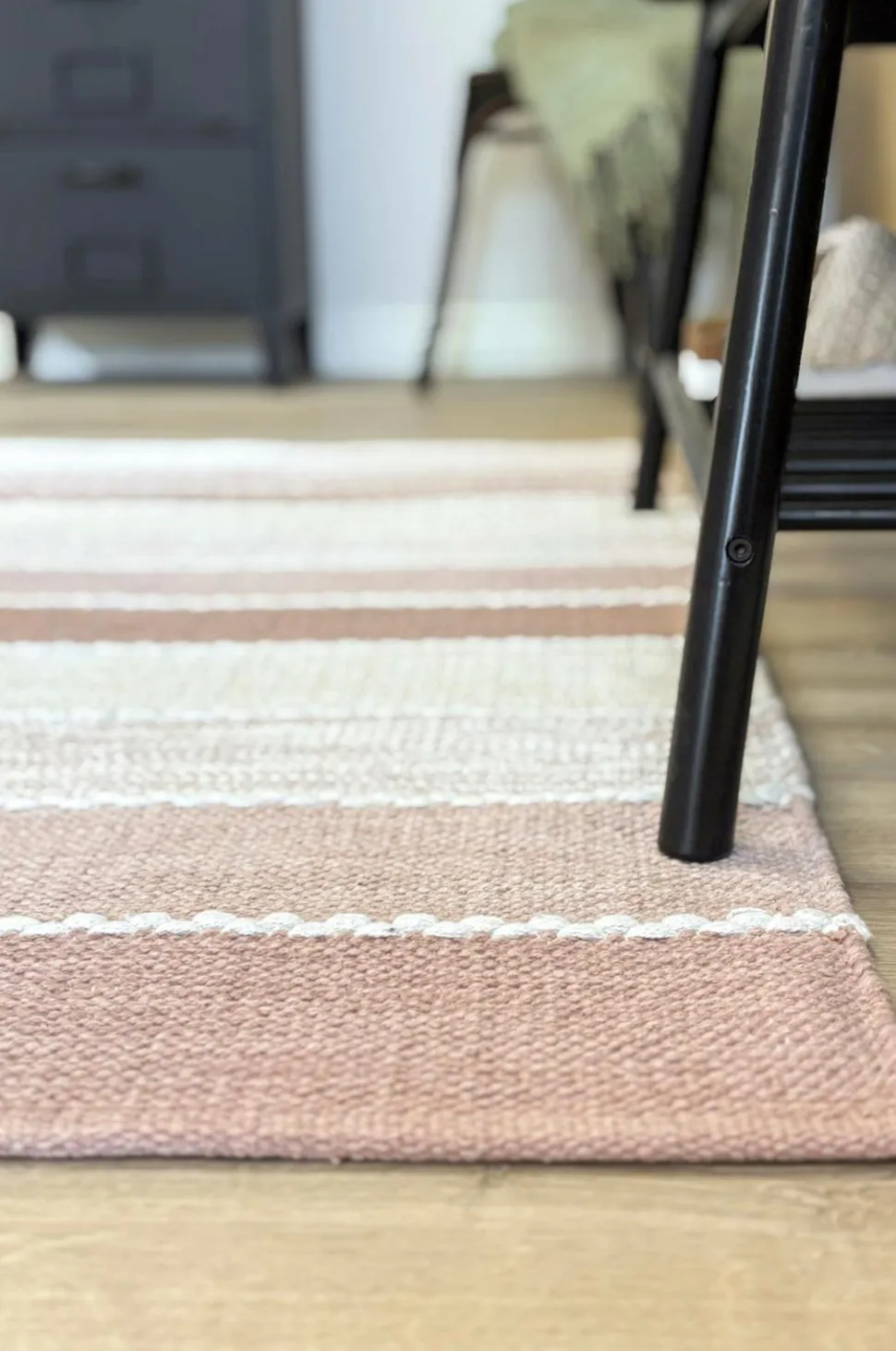 Båstad er et stilfuldt, stribet, håndvævet garntæppe, der giver et levende præg til ethvert rum. Farverne skifter gradvist fra mørkere nuancer i kanterne til lysere toner i midten, mens hvide syninger elegant markerer overgangene. Tæppet er fremstillet af ren bomuld og er både slidstærkt og blødt. Den brede farvepalet gør, at båstad passer perfekt til både minimalistisk og moderne interiør.