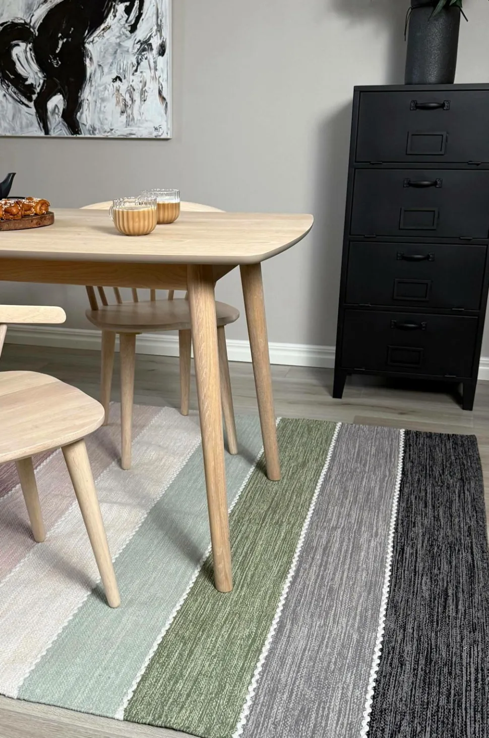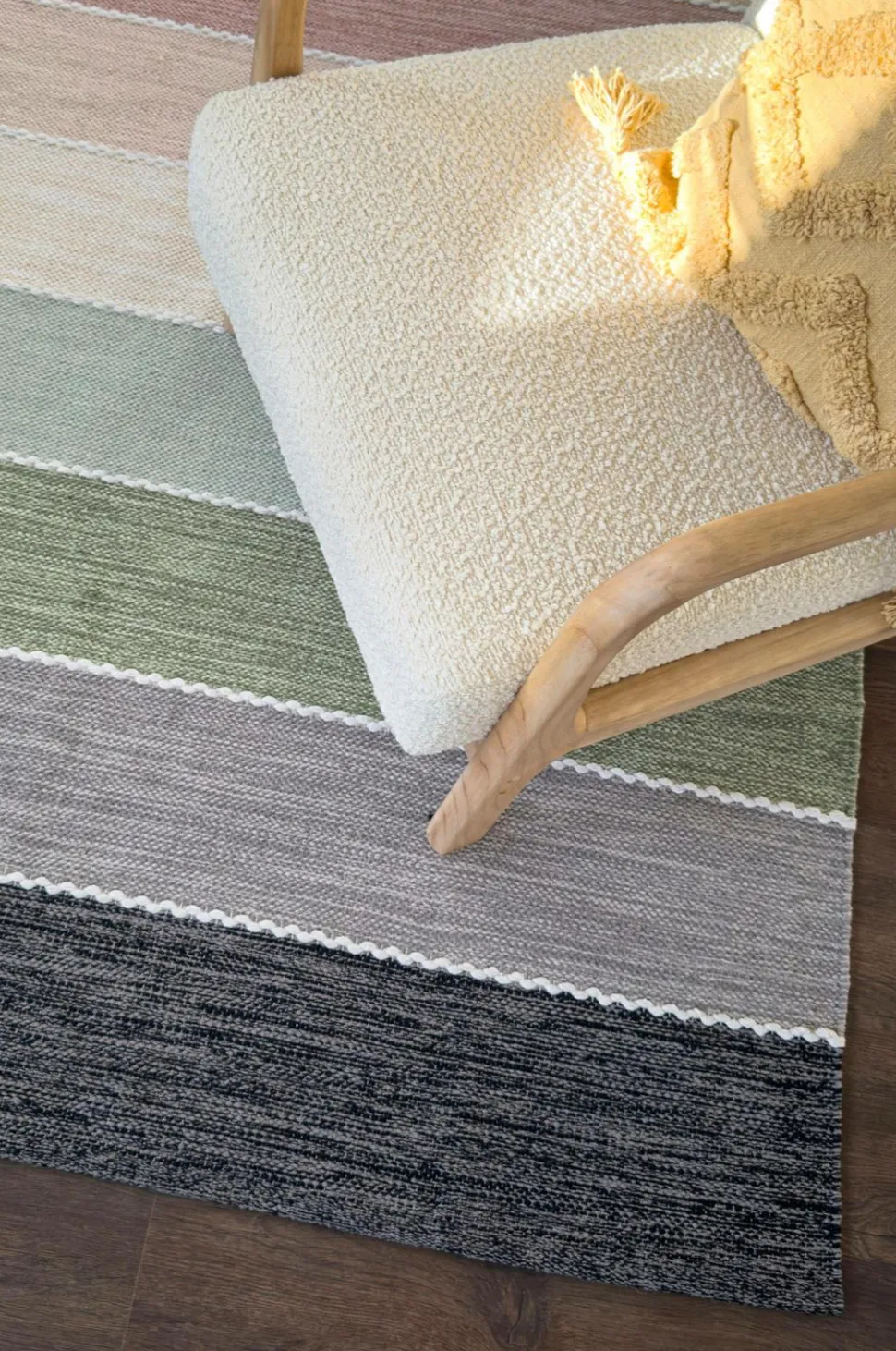 Dette tæppe er vævet af ren bomuld og er både slidstærkt og blødt. Den brede farvepalet gør nyhamn multi perfekt til både minimalistisk og moderne indretning. Da hvert tæppe er håndlavet, kan der forekomme små variationer i vævning, farve og størrelse, hvilket gør hvert stykke unikt. En størrelsesvariation på ca. 3-5 % i forhold til de angivne mål er også en naturlig del af den håndværksmæssige produktionsproces.