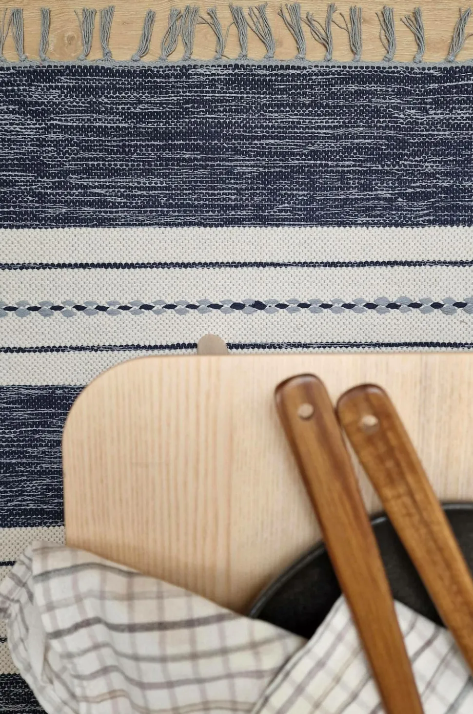Yarn carpet sund er en serie stribede bomuldstæpper med de klassiske frynser. Da sund er vendbar og kan bruges på begge sider, giver det tæppet en lang levetid, fordi man på den måde får to tæpper i ét. Garntæpper er et klassisk element i det svenske hjem og passer lige så godt i køkkenet som i soveværelset eller entreen.