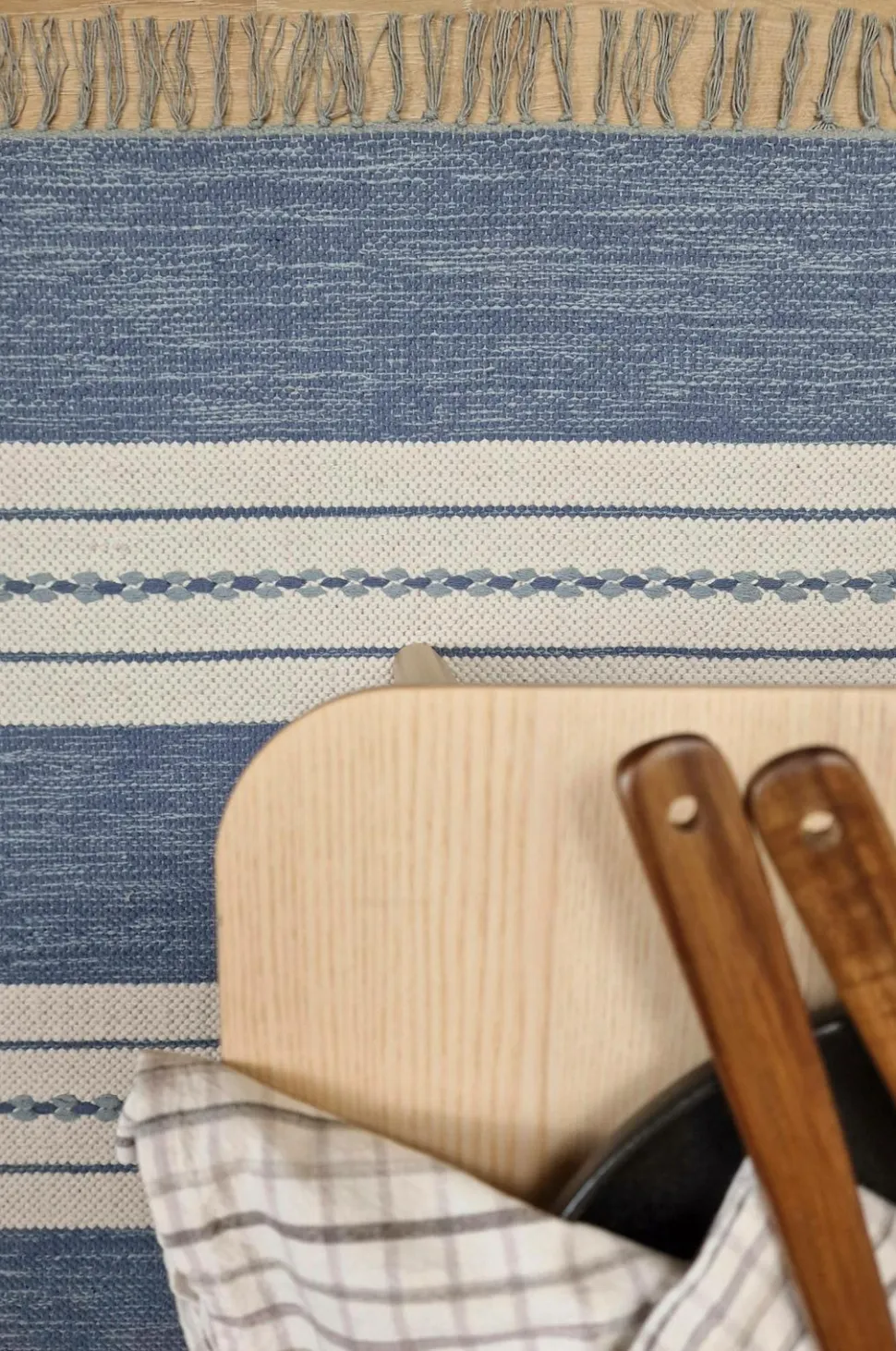Yarn carpet sund er en serie stribede bomuldstæpper med de klassiske frynser. Da sund er vendbar og kan bruges på begge sider, giver det tæppet en lang levetid, fordi man på den måde får to tæpper i ét. Garntæpper er et klassisk element i det svenske hjem og passer lige så godt i køkkenet som i soveværelset eller entreen.