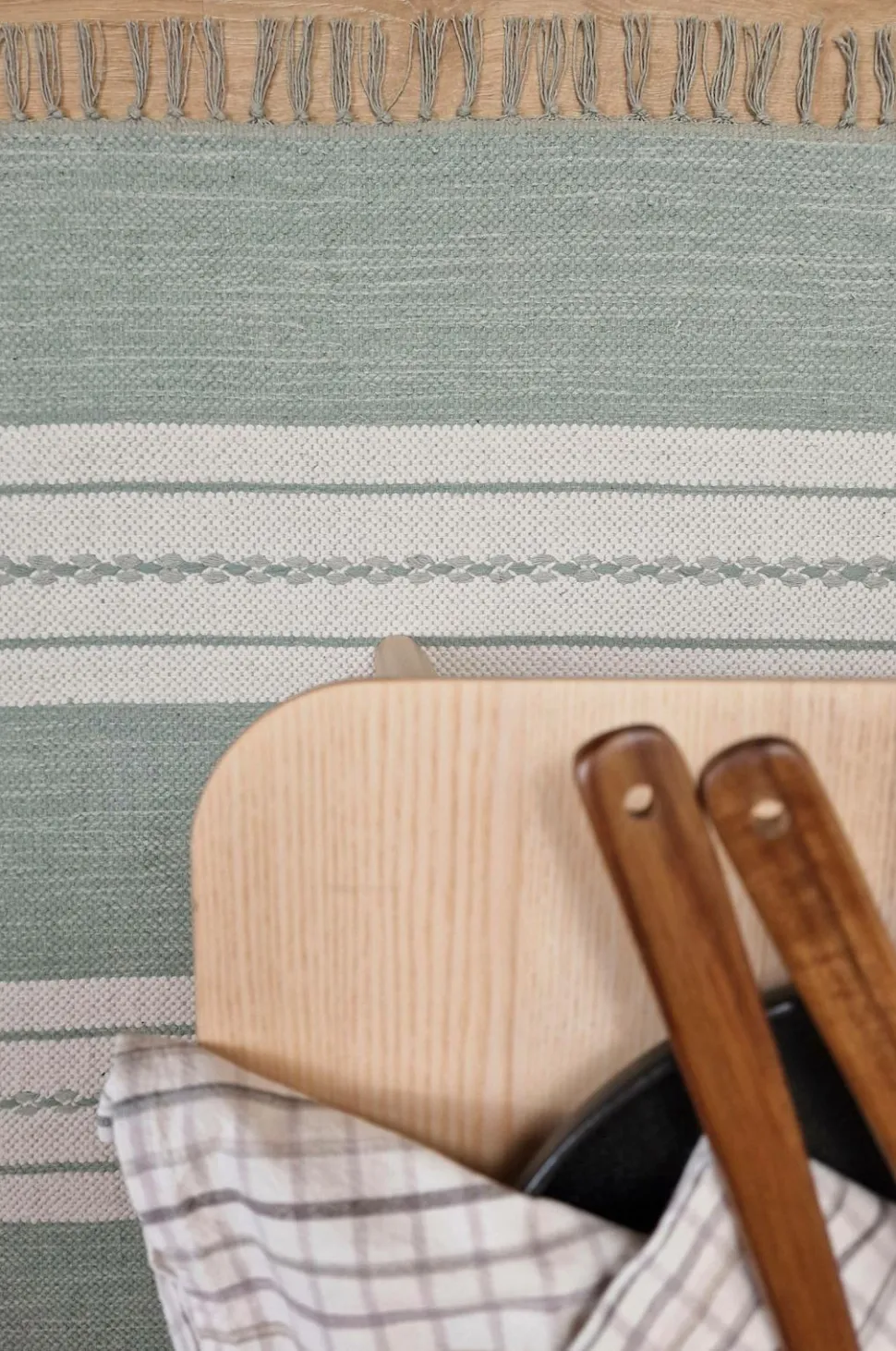 Yarn carpet sund er en serie stribede bomuldstæpper med de klassiske frynser. Da sund er vendbar og kan bruges på begge sider, giver det tæppet en lang levetid, fordi man på den måde får to tæpper i ét. Garntæpper er et klassisk element i det svenske hjem og passer lige så godt i køkkenet som i soveværelset eller entreen.