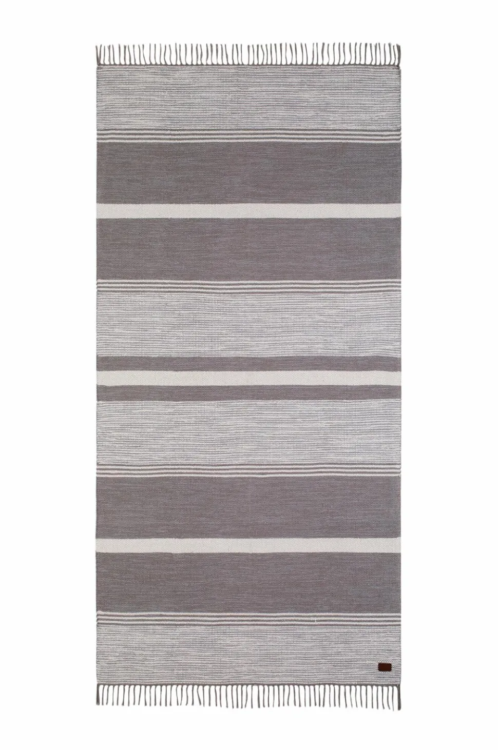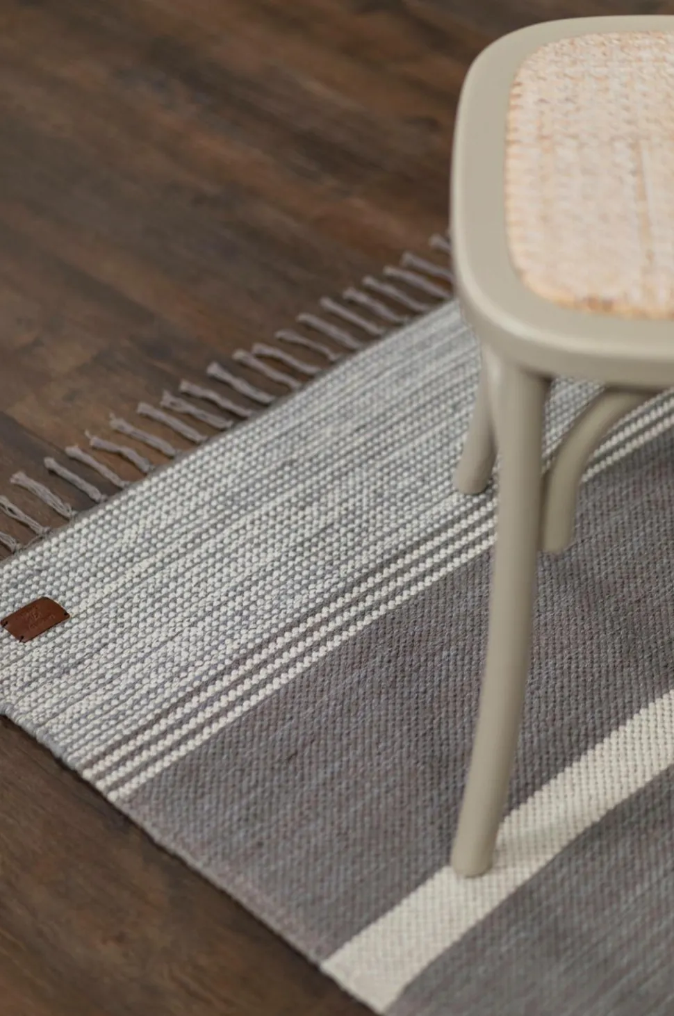 Kludetæppe Vindö er en serie håndvævede bomuldstæpper med det klassiske stribede mønster og frynser på kortsiderne. Da tæppet er vendbart og kan bruges på begge sider, giver det tæppet en lang levetid, fordi du på den måde får to tæpper i ét. Kludetæpper og køkkener er et koncept, der går hånd i hånd, men tæppets høje brugsniveau gør, at det passer lige godt i soveværelset, vaskerummet eller som et indbydende entrétæppe.