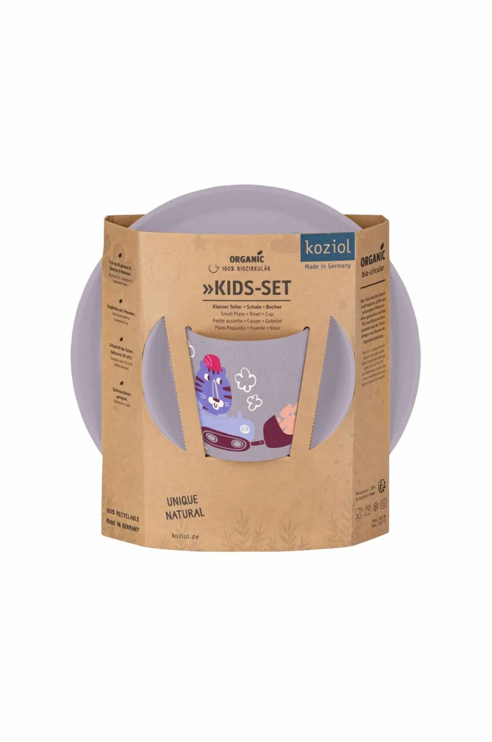 Connect Børneservice med tallerken, skål og krus. Den farverige børnekollektion inspirerer med muntre mønstre og kærlige detaljer, der gør hvert måltid til en oplevelse. Alle produkter er børnevenlige, holdbare, stabile, nemme at bruge og nemme at passe på. Alle produkter er fødevaregodkendte. Mål: kop 7,5 x 7,5 x 7,5 cm / skål: 12,5 x 12,5 x 5,5 cm / tallerken: 20,5 x 20,5 x 2,0 cm. Materiale: termoplast og træfiber, 100 % genbrugsmateriale. Vejledning: tåler opvaskemaskine.