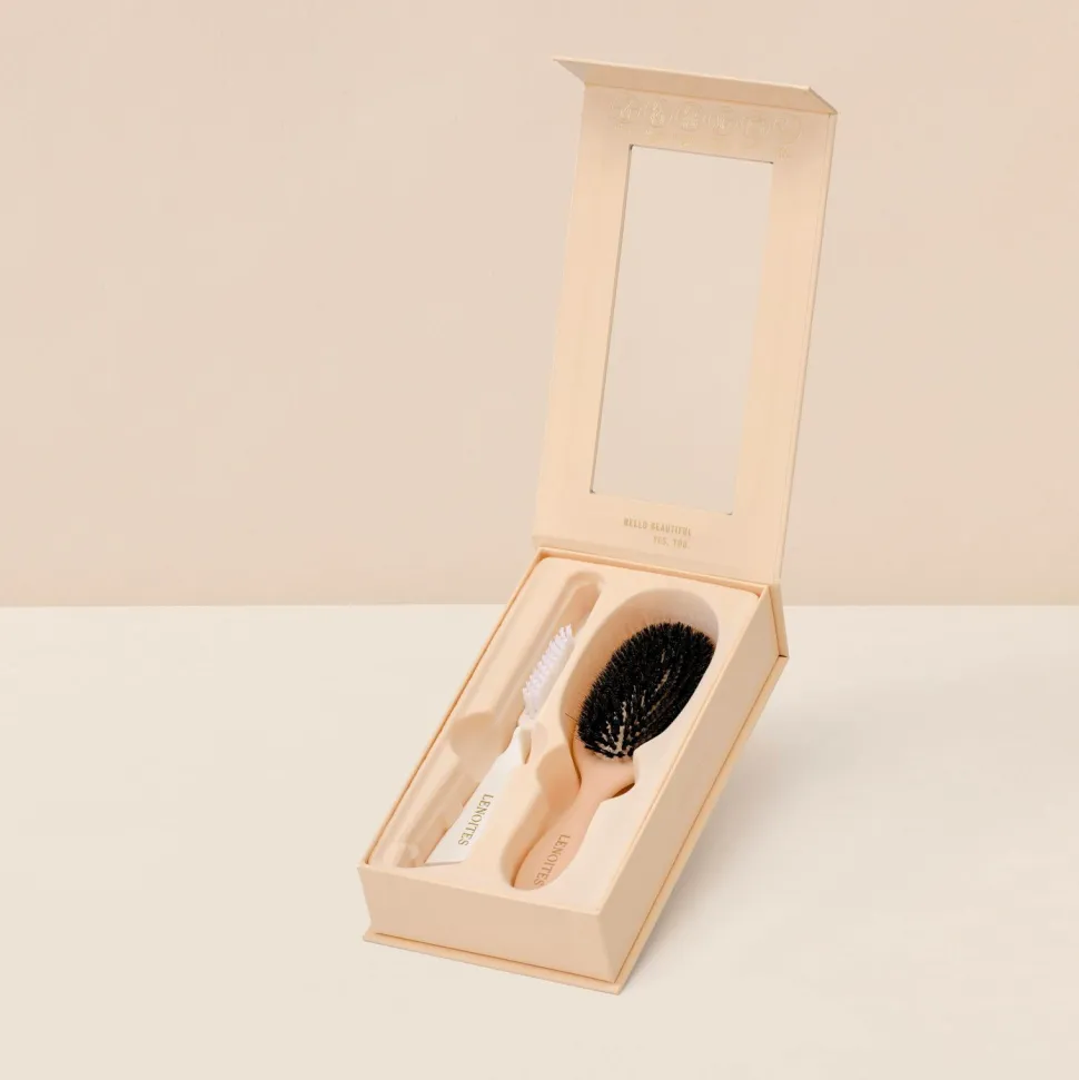 Skånsom oval hårbørste med en kombination af vildsvinehår og nylonbørster, der hjælper med at rede håret ud for at opnå optimale resultater. Hårbørsten stimulerer hovedbunden og øger blodcirkulationen. Den fordeler de naturlige olier fra hovedbunden til spidserne for at reducere krus og give skinnende, sundt hår. Luftpuden tilpasser sig hovedets form, og takket være den praktiske størrelse er den nem at have med i tasken og på farten. Miljøvenlig opbevaringspose og rengøringsværktøj medfølger.
