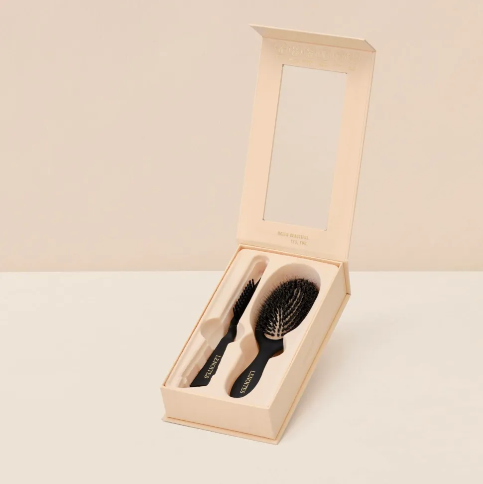 Skånsom oval hårbørste med en kombination af vildsvinehår og nylonbørster, der hjælper med at rede håret ud for at opnå optimale resultater. Hårbørsten stimulerer hovedbunden og øger blodcirkulationen. Den fordeler de naturlige olier fra hovedbunden til spidserne for at reducere krus og give skinnende, sundt hår. Luftpuden tilpasser sig hovedets form, og takket være den praktiske størrelse er den nem at have med i tasken og på farten. Miljøvenlig opbevaringspose og rengøringsværktøj medfølger.