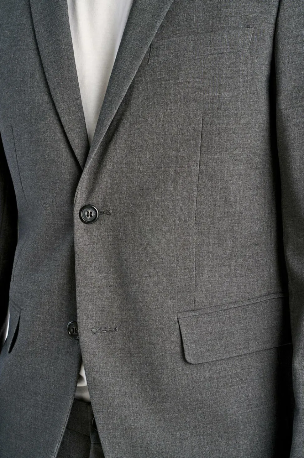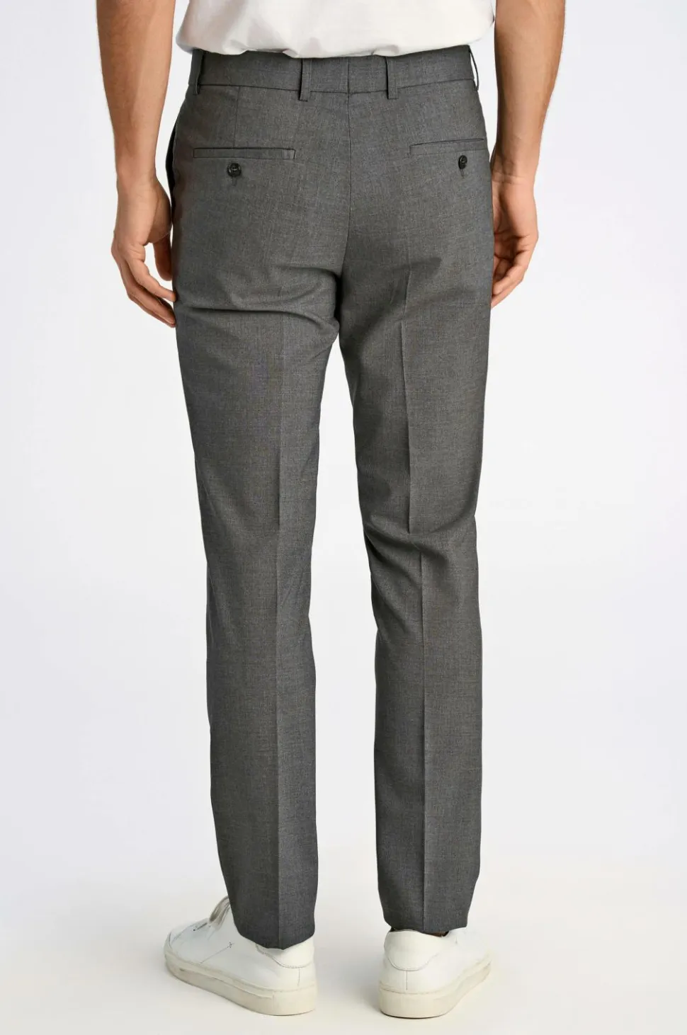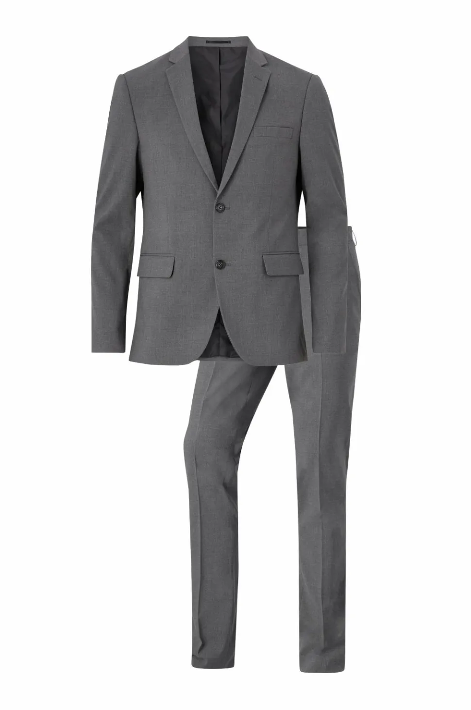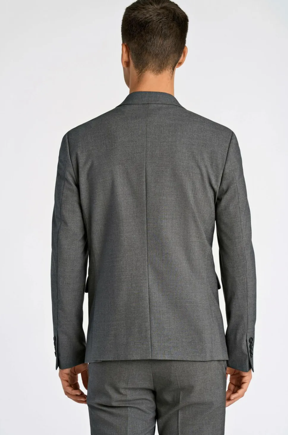 Jakkesæt fra Lindbergh med blazer og buks i klassisk model. Blazeren lukkes med to knapper og har fire pynteknapper i ærmekant. To lommer med lommeklap, en brystlomme og tre inderlommer. Let vatterede skuldre. Dobbelte slidser bagpå. Længde ca. 71 cm i str. M. Buksen har linning med to knapper, bæltestropper og gylp med lynlås. To lommer foran og to indsatte baglommer med knap. Benlængde ca. 82 cm i str. M.