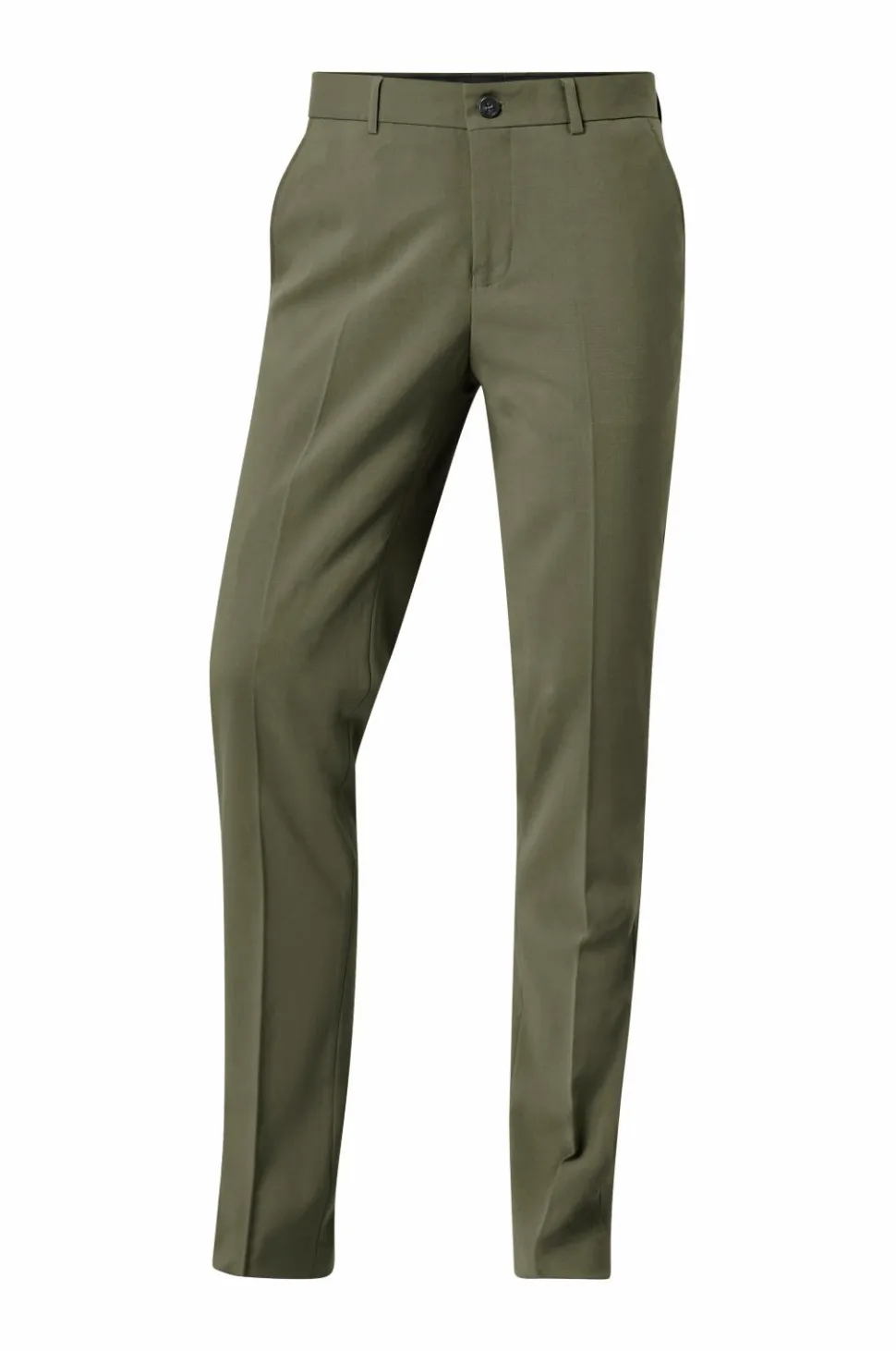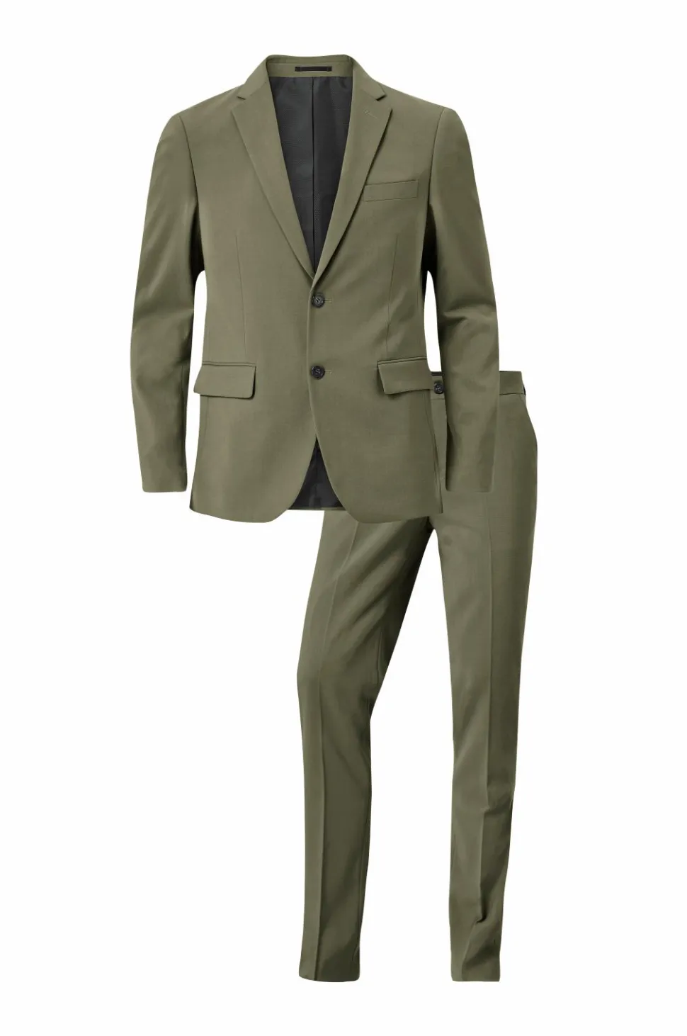 Jakkesæt fra Lindbergh med blazer og buks i klassisk model. Blazeren lukkes med to knapper og har fire pynteknapper i ærmekant. To lommer med lommeklap, en brystlomme og tre inderlommer. Let vatterede skuldre. Dobbelte slidser bagpå. Længde ca. 71 cm i str. M. Buksen har linning med to knapper, bæltestropper og gylp med lynlås. To lommer foran og to indsatte baglommer med knap. Benlængde ca. 82 cm i str. M.