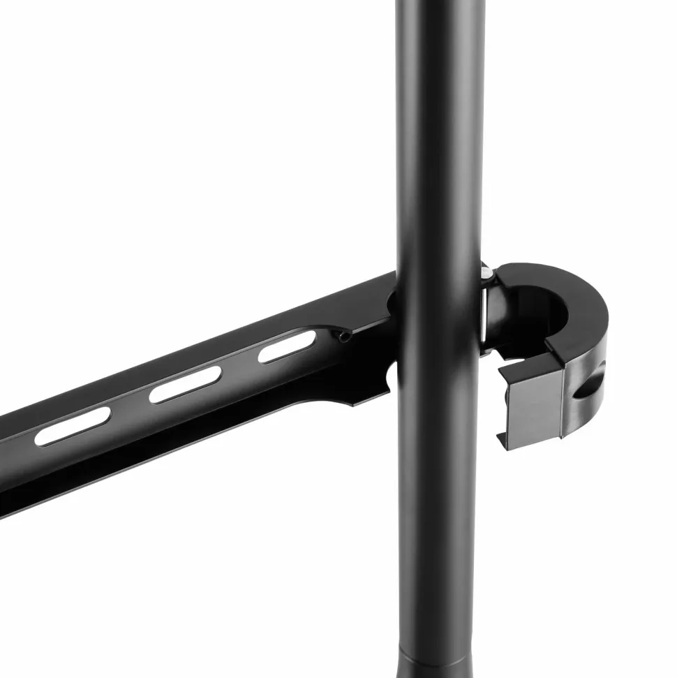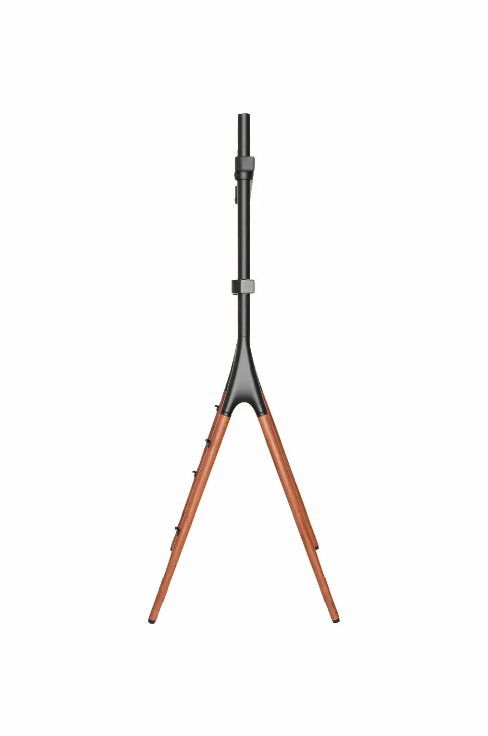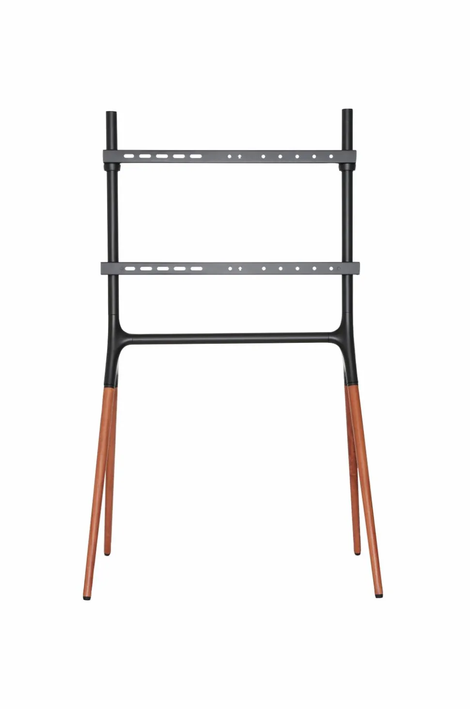 Gulvstativ i staffeli-design for stil og forbedret seeroplevelse. Fremstillet med ben i valnøddetræ og stålbeslag, komplet med sikkerhedswire, der sikrer stabilitet. Nem kabelhåndtering er inkluderet.