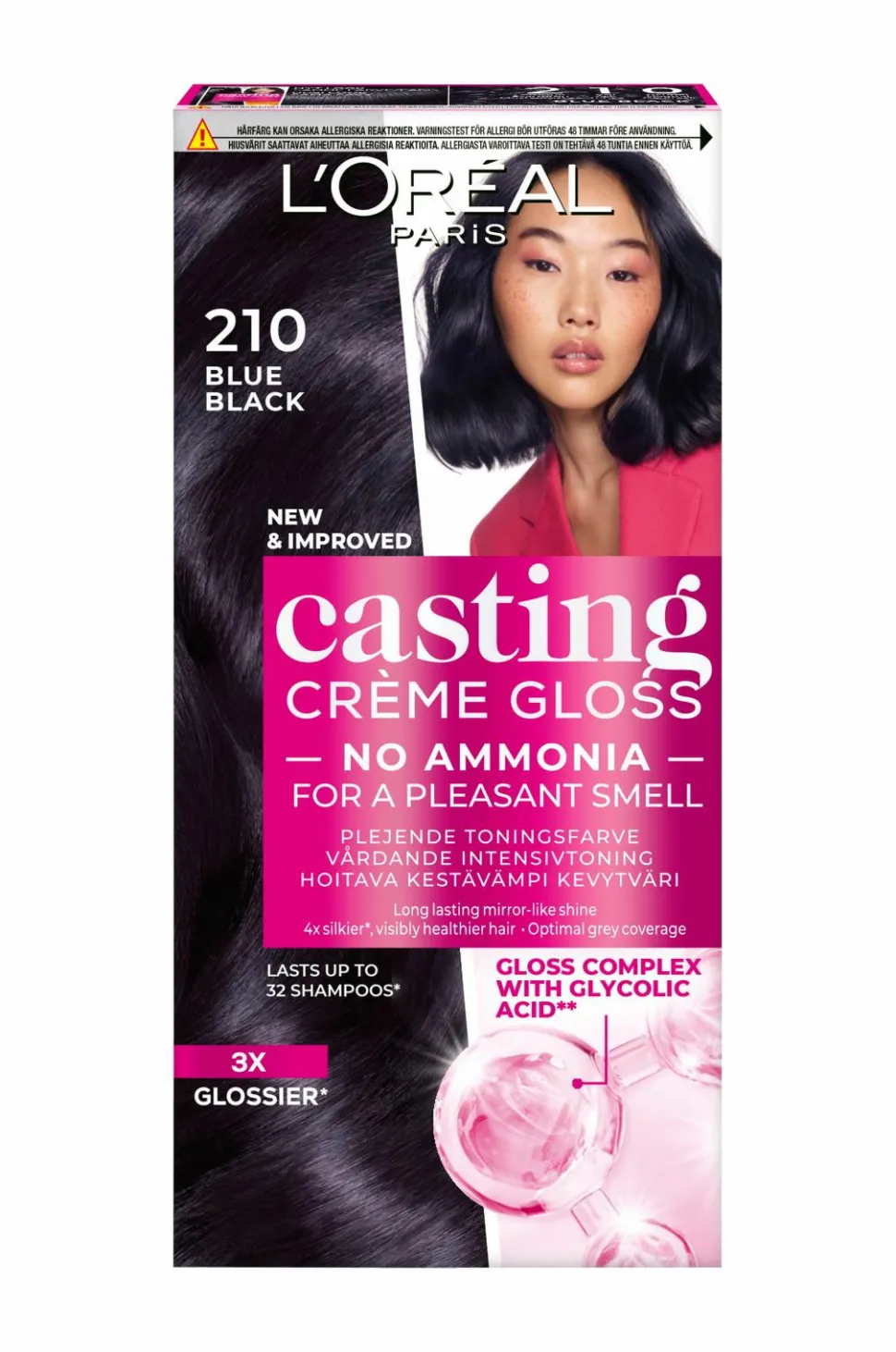 L’Oréal Paris Casting Crème Gloss er en semi-permanent hårfarve til alle hårtyper. Formlen er beriget med et gloss-kompleks med glykolsyre**, og resultatet er optimal dækning af grå hår og 3x mere glansfuldt samt 4x mere silkeblødt hår*.