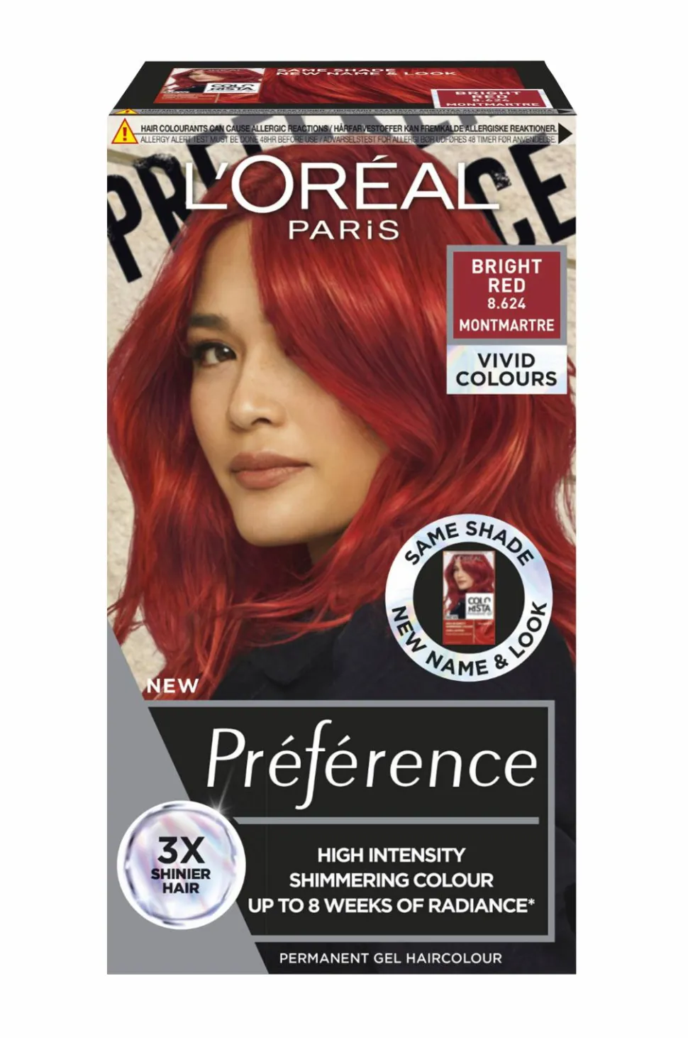 L´Oréal Paris Préférence Vivid Colors innovative ekspertise tilbyder nu livlige hårfarver i en formel som er beriget med kraftfulde, klare farvestoffer udvalgt af vores farveeksperter for at give et højintensivt, glansfuldt farveresultat. Gelformlen som er udviklet til at passe til alle hårtyper, blandes med et 150 ml mixing kit for en hurtig og jævn påføring. Den transparente formel tilfører 3 gange** mere glans og en hårfarvefuld af reflekser.