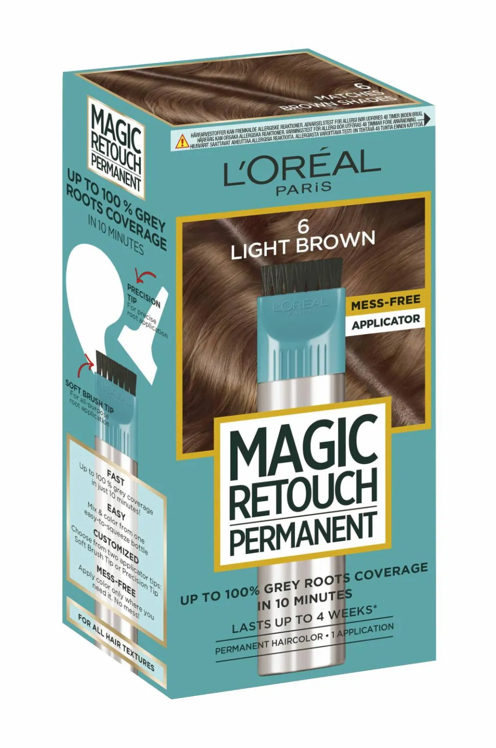 Magic Retouch permanent hårfarve til udvoksninger giver et quick-fix mellem hårfarvninger. Formlen matcher din hårfarve og giver et smukt og jævnt resultat med op til 100% dækning af grå hår – på kun 10 minutter! Den smarte applikator gør det nemt og hurtigt at skjule dine udvoksninger.