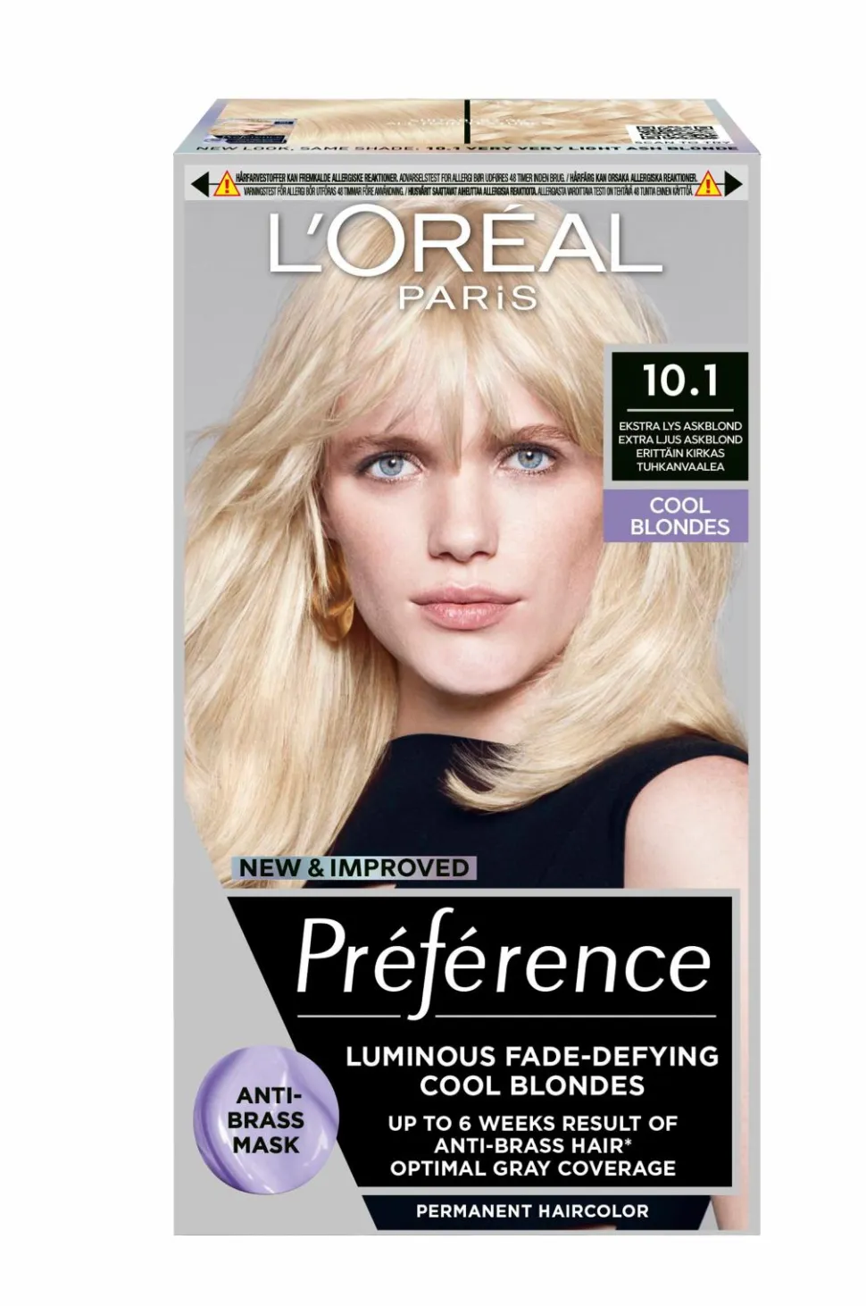 Hårfarvningsmidler kan fremkalde alvorlige allergiske reaktioner. Læs brugsanvisningen, og følg den nøje. Produktet er ikke beregnet til brug på børn under 16 år. Farv ikke håret, hvis du har udslæt i ansigtet eller følsom, irriteret og skadet hårbund, eller hvis du har reageret på hårfarvningsmidlerne tidligere.