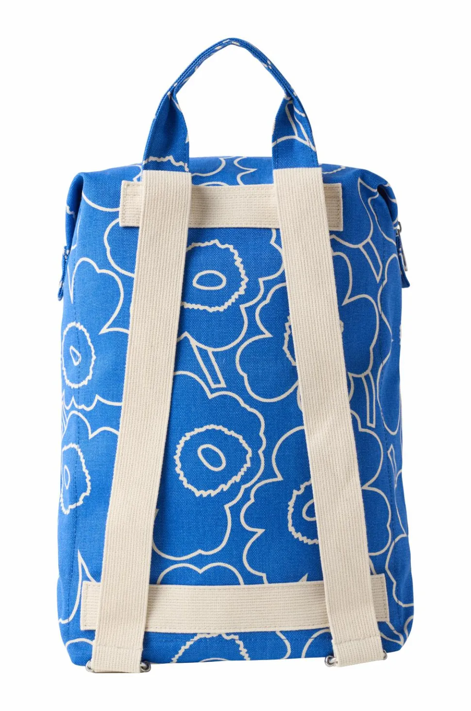 Mono Backpack Piirto Unikko er lavet af økologisk bomuld. Det store Marimekko “M” er trykt foran. backpack har lynlåslukning, justerbare skulderstropper og to åbne lommer foran. Der er en stor åben lomme på indersiden, som er stor nok til at rumme en bærbar computer. Lynlåsens ender kan fastgøres til taskens sider med trykknapper.