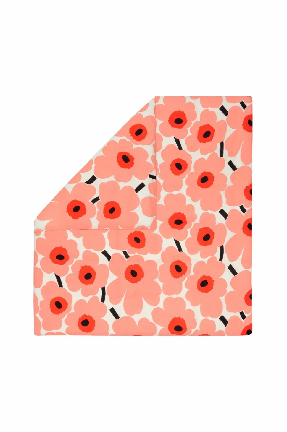 Det mønstrede Unikko dobbeltdynebetræk har håndåbninger i de øverste hjørner, som gør det lettere at skifte betræk.