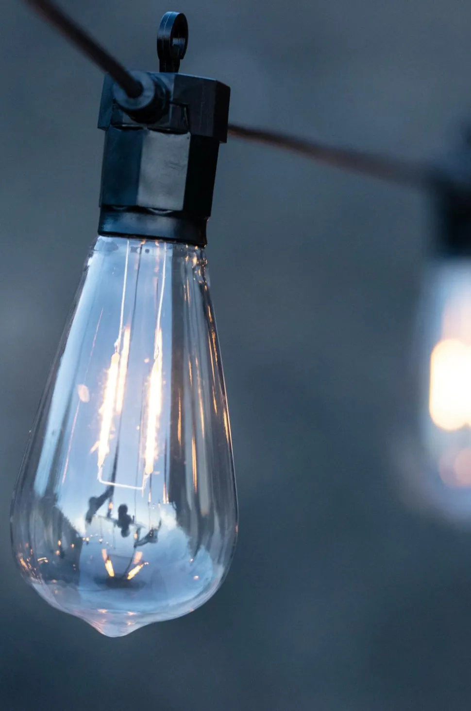 Garden 24 partylyskæde med 10 LED-pærer. Bredde 4,5 cm, dybde 17 cm, højde 3,5 cm. IP44. Gummikabel og lamper i plast. Transformator medfølger ikke.