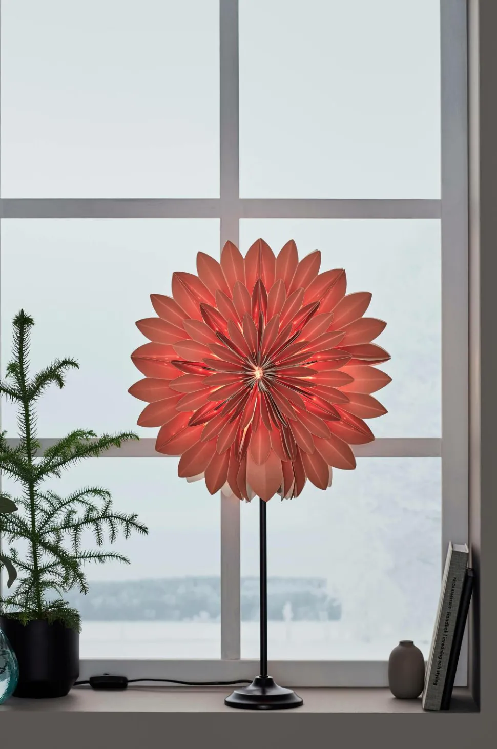 Lampefod i metal. Kan anvendes til de mindste bordstjerner Cornelia (44 cm) og Sol (44 cm). Lampefoden skal have en pære med lille sokkel (E14) på maks. 25 W eller tilsvarende i LED, medfølger ikke. Længde 12,5 cm, bredde 12,5 cm og højde 51 cm. 200 cm ledning med afbryder.
