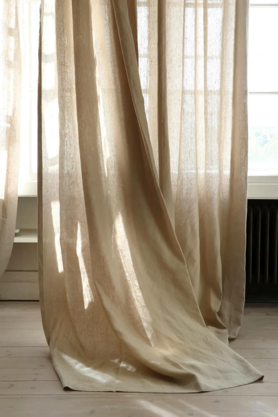 Luksuriøst og tungt hørgardin. 290 cm bredt, hvilket betyder, at det passer til både almindelige og til store vinduespartier. Gardinet er vævet i 100% tætvævet hør. Hør er et naturligt materiale, som bliver smukkere med tiden. Gardinet har et skræddersyet look med klassiske, usynlige sidesømme og dobbelt oplæg forneden, så det får den rigtige tyngde. 4-fingerkrog medfølger til hver gardinlængde med rynkebånd. Fingerkrogsophæng passer til alle skinner med glidere og almindelige gardinstænger med gardinringe og stropper. 4-fingerkrog anvendes til at skabe flotte folder i gardinet, som giver et velsyet indtryk og lader gardinerne komme til deres ret. Stoffet er OEKO-TEX® Standard 100 certificeret, det vil sige at produktet er testet for at sikre, at det ikke indeholder sundhedsskadelige stoffer. 30 grader skånsom maskinvask eller kemisk rens. Bredde 290 cm Højde 250 cm og 290 cm. Sælges stykvis.
