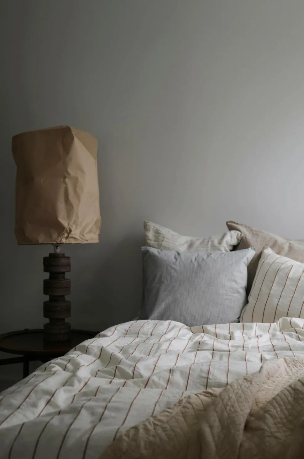 Quilt lavet af ældre sengetæpper som er farvet om med GOTS-certificeretfarvepigment i Sverige. Genbrug af materialer i stedet for ny produktion er et mere bæredygtigt valg og et skridt til at reducere tekstilspild. Cirkelquiltet over- og underside i natur.
