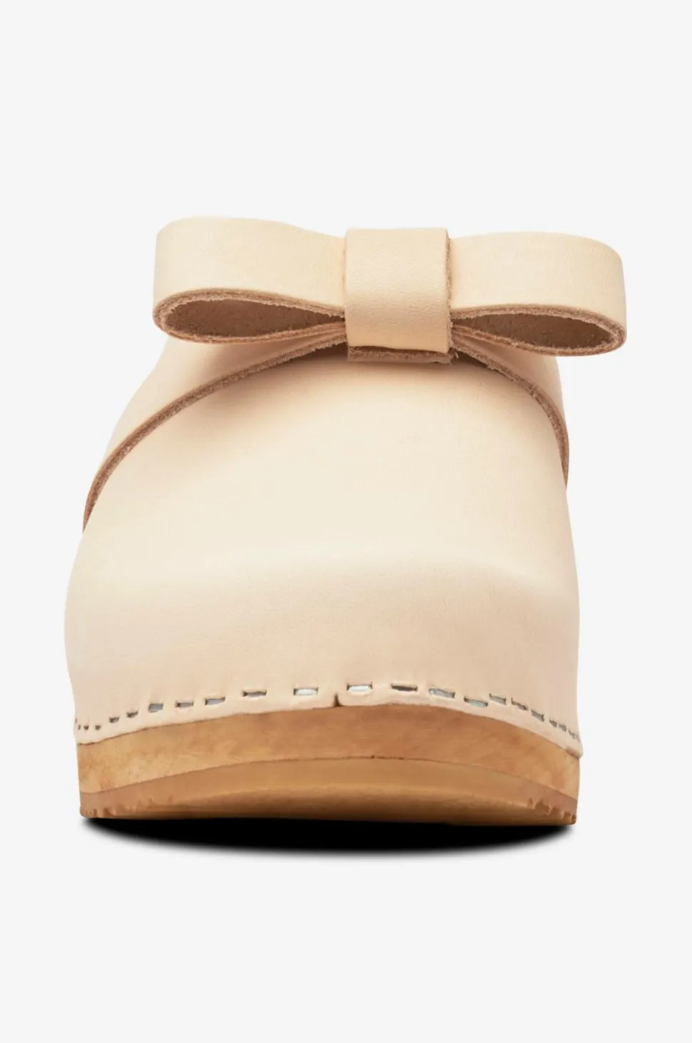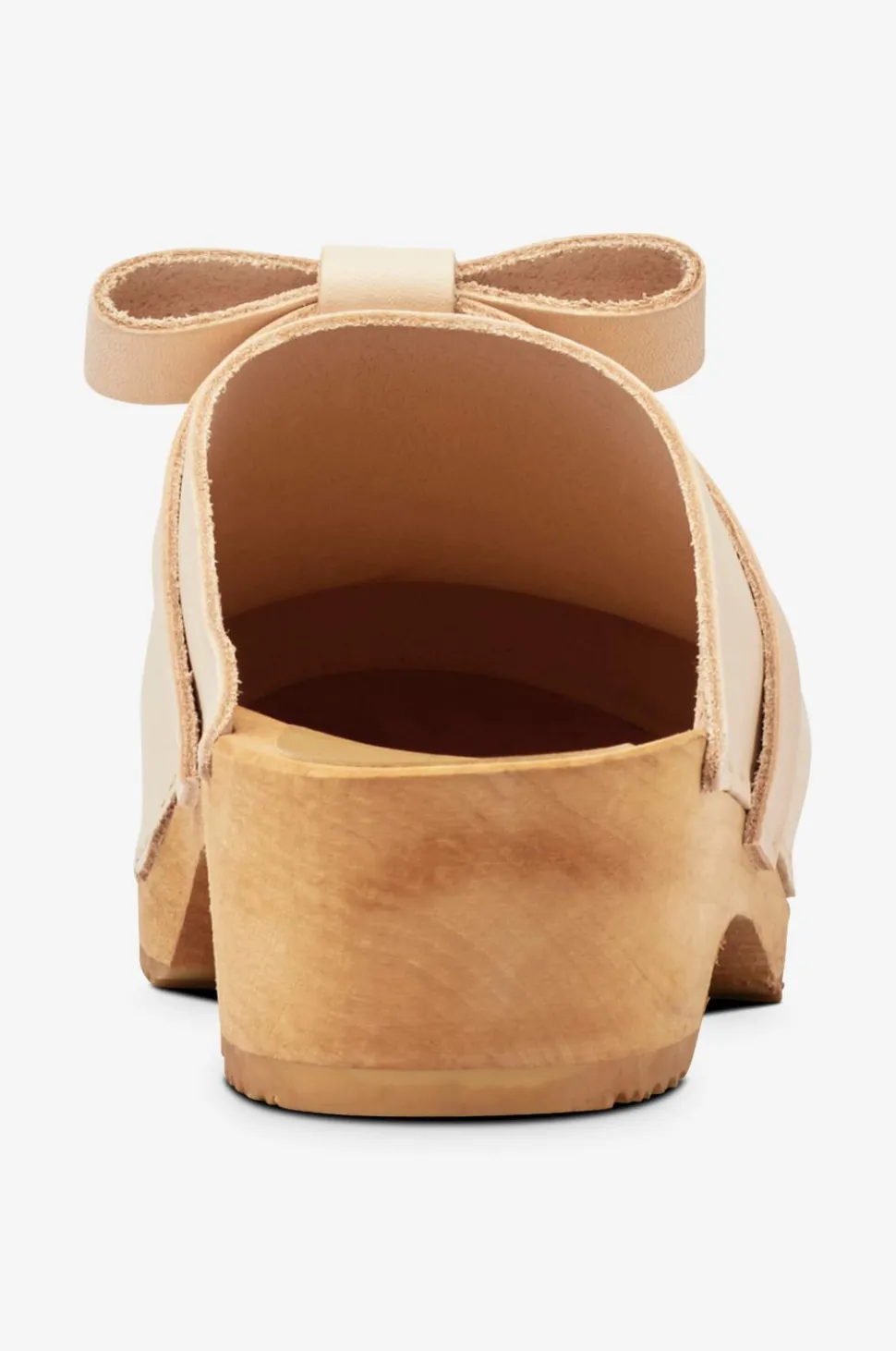 – Læderet i de sort- og nudefarvede træsko er vegetabilsk garvet med barkekstrakt.