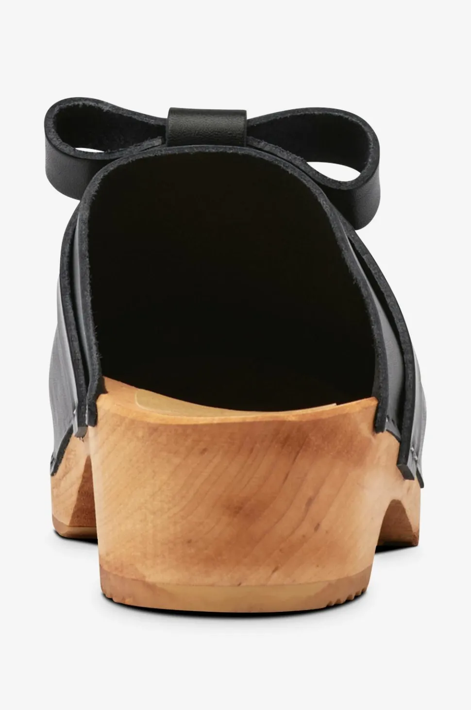 – Læderet i de sort- og nudefarvede træsko er vegetabilsk garvet med barkekstrakt.