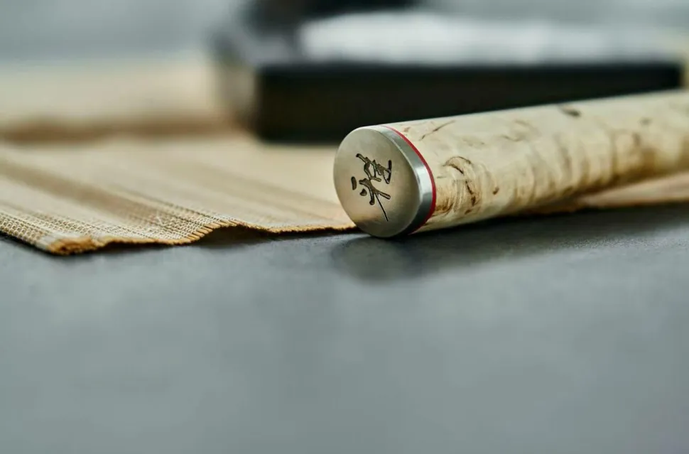 Gyutoh med en længde på 16 cm er den perfekte universalkniv til at skære, hakke og dele råvarer. Kniven får sin ekstreme skarphed via den ultraskarpe Honbazuke-slibning af knivbladet, som er slebet på begge sider. Hertil kommer den typiske japanske knivbladsprofil, som tilbyder et symmetrisk skær med en vinkel på 19 °C. Knivbladets kerne består af MicroCarbide pulverstål MC63. Dette er omgivet af 100 lag af to forskellige typer rustfrit stål, så det unikke Flower-Damaskus-mønster kan skabes på knivbladet. Dette mønster gør kniven unik. For at opnå en hårdhed på bemærkelsesværdige ca. 63 Rockwell er CRYODUR®-knivbladet ishærdet i en specialudviklet proces ved -196 °C. Det gør kniven modstandsdygtig mod slitage, fleksibel og robust.