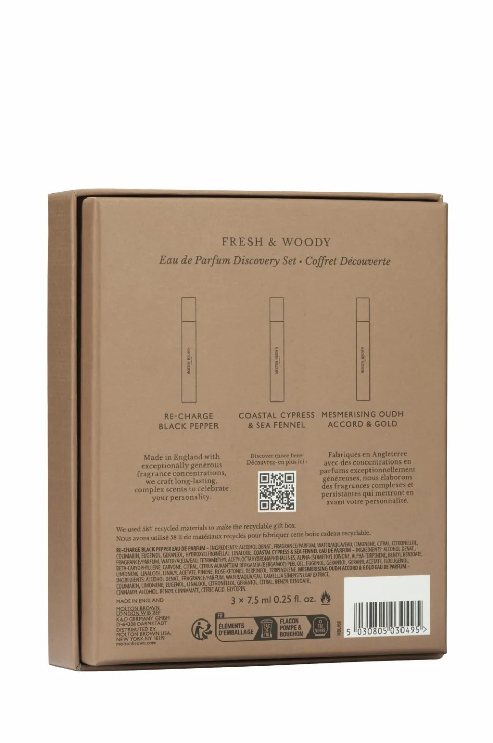 Tag på dufteventyr med vores Eau de Parfum Discovery Set i rejsevenlige størrelser, og find din nye signaturduft – fra den klassiske træagtige Re-charge Black Pepper til den rigt harpiksholdige Mesmerising Oudh Accord & Gold og den friske balance mellem hav og land i Coastal Cypress & Sea Fennel. Prøv hver enkelt duft afhængigt af dagen, årstiden eller humøret – eller giv dette sæt som en imponerende gave.