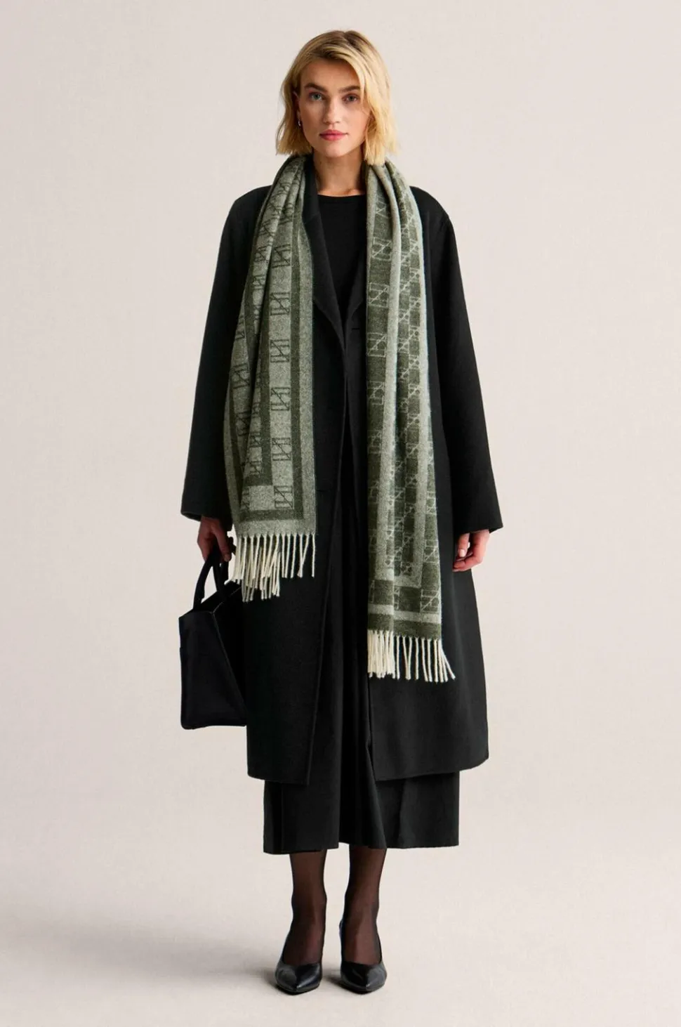 Uldtørklæde med newhouse -logo i størrelsen 35 x 220 cm.