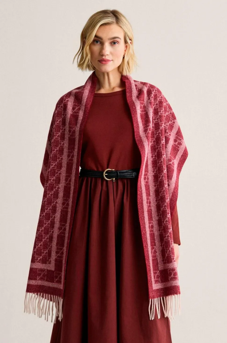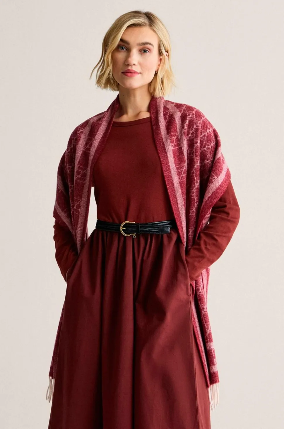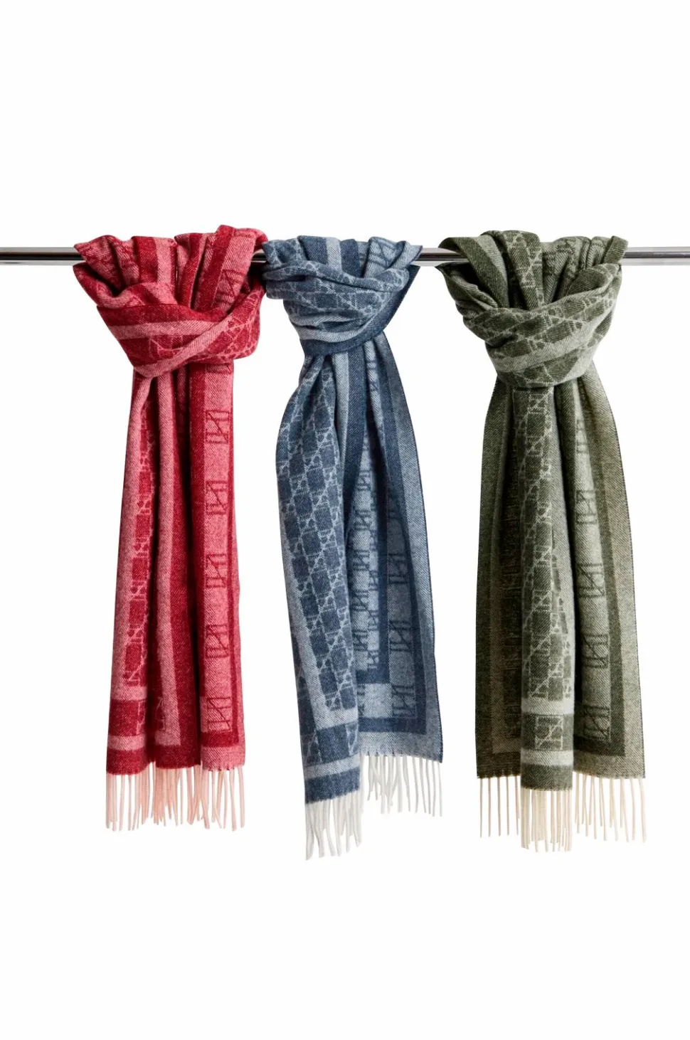 Uldtørklæde med newhouse -logo i størrelsen 35 x 220 cm.