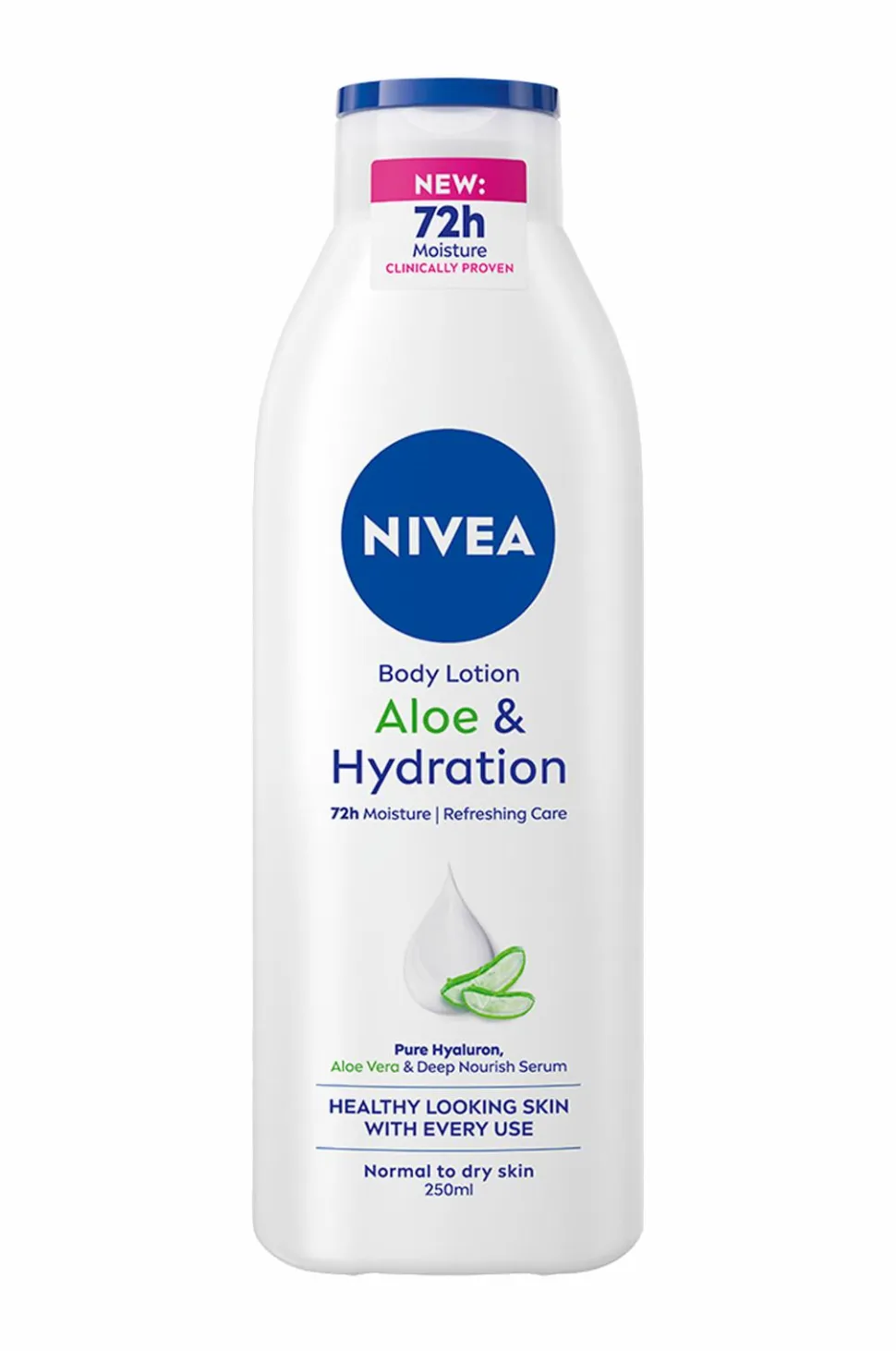 Forvandl din tørre hud med Nivea Aloe & Hydration Body Lotion. Denne bodylotion er beriget med Deep Moisture Serum og naturlig Aloe Vera, der giver 5-i-1 komplet pleje: 48 timers dyb fugt, beskyttelse mod tørhed, en blød hudfornemmelse, ikke-fedtet tekstur og sund hud. Den er velegnet til alle hudtyper, også tør hud, og giver fugt og komfort. Regelmæssig brug af denne bodylotion sikrer, at alle dele af din krop får den pleje, den fortjener, især de områder, der hurtigere tørrer ud. Denne lotion er dermatologisk testet og er ideel til daglig brug.