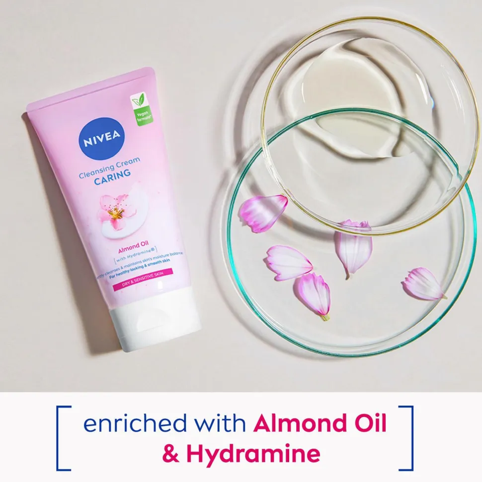 NIVEA Gentle Cleansing Cream er en ansigtsrens beriget med mandelolie og hudidentisk hydramin, som er kendt for effektivt at binde fugt i huden. Ansigtsvasken renser blidt i dybden og virker beroligende, samtidig med at den fugter. Den beroligende mandelolie er blid og nærende og er derfor velegnet til tør hud. Derudover plejer denne rensecreme huden, så den bevarer sin naturlige fugtbalance. Passer til tør og følsom hud. Formlen er 99% biologisk nedbrydelig og har en vegansk formel – fri for animalske ingredienser. Dermatologisk testet.