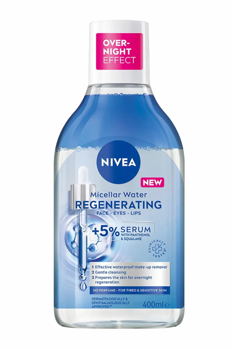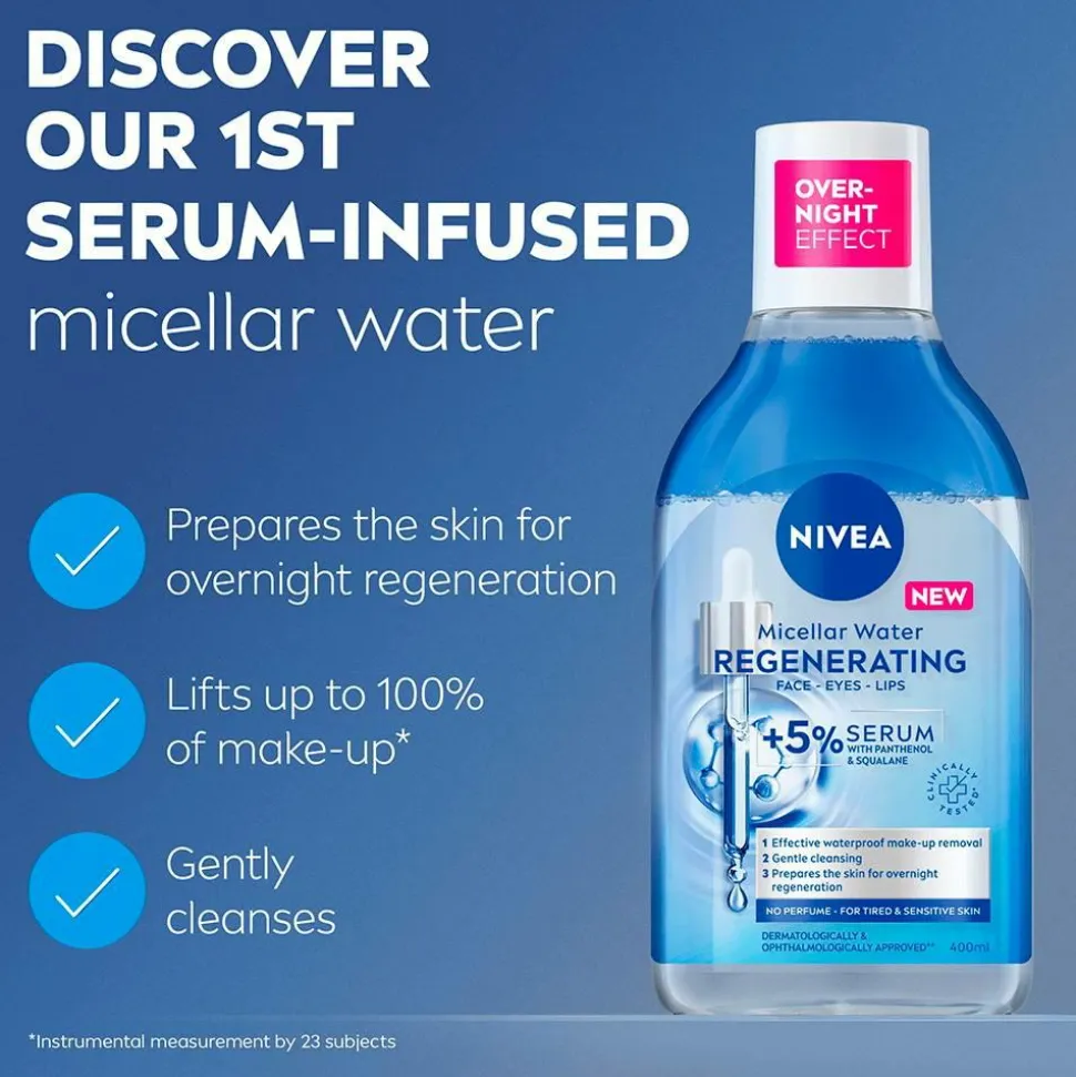 Micellar Water Regenerating er designet til træt og følsom hud, beriget med et aminosyrekompleks og 5 % serum, der indeholder panthenol og squalane. Denne milde formel fjerner effektivt vandfast makeup, urenheder og snavs med et par lette strøg og efterlader ingen fedtede rester. Det er ikke nødvendigt at gnide, hvilket gør den meget skånsom mod huden. Den genopretter fugtbalancen og fremmer hudens fornyelse og forbereder den på nattens restitution, så du vågner op med forfrisket hud. Denne formel er parfumefri og dermatologisk og oftalmologisk testet. Oplev de klinisk dokumenterede regenererende effekter af Micellar Water Regenerating i dag!