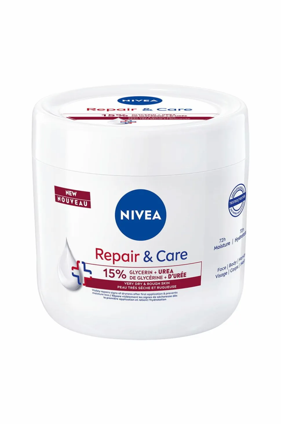 Føles din hud ekstremt tør og ru, og har den brug for mere end bare almindelig pleje? Så har vi den perfekte løsning til dig: Nivea Repair & Care Urea Cream. Denne blide, men kraftfulde formulering indeholder 15 % glycerin og urea, som arbejder sammen om at fugte og nære din hud i dybden. Den reparerer effektivt synlige tegn på tørhed og efterlader din hud blød fra første gang, du bruger den. Urea fungerer som et fugtgivende middel, der forhindrer fugttab og holder din hud velhydreret i op til 72 timer. Giv dig selv den forkælelse, din hud fortjener, med Nivea Repair & Care Urea Cream.