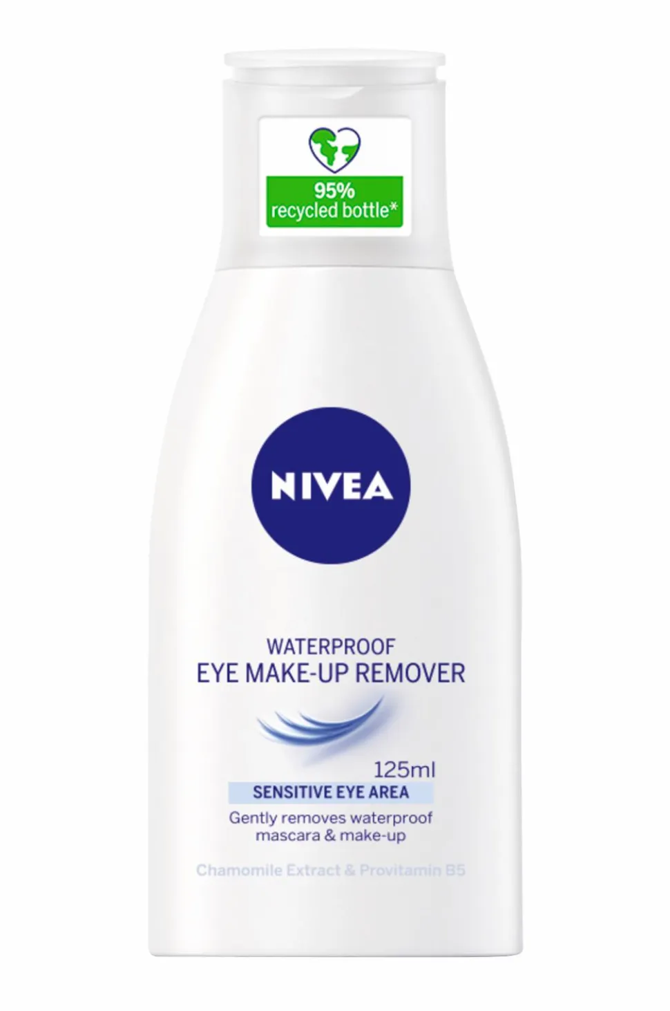 Nivea Waterproof Eye Make-up Remover er specielt udviklet til det følsomme område omkring øjnene og fjerner vandfast øjenmakeup og læbestift uden at efterlade fedtede rester. Makeupfjerneren er beriget med kamilleekstrakt og provitamin B5 og fugter det følsomme område rundt om øjnene. Resultat: rene og velplejede øjenvipper. Passer til alle hudtyper. Mild duft. Dermatologisk testet.