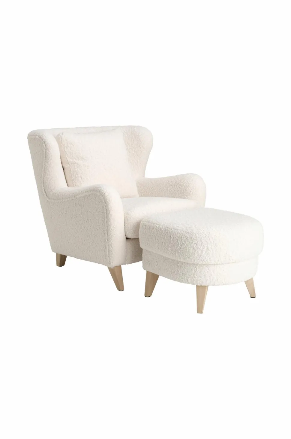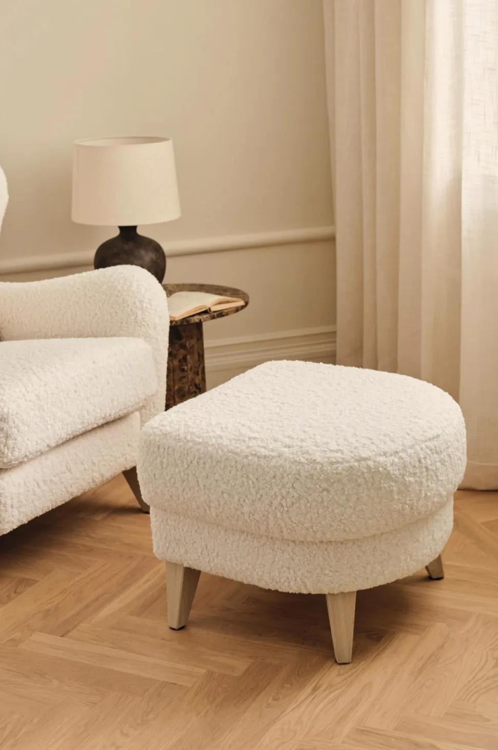 Ontario-serien har en blød, afrundet form med fokus på komfort og holdbarhed. Møblerne er betrukket med imiteret fåreskind med en Martindale på 40.000. Generøse dimensioner og blød polstring giver behagelig støtte, når man sidder ned i længere tid. Naturfarvede egetræsben tilføjer et subtilt strejf af skandinavisk design. Serien består af en lænestol og en matchende fodskammel.