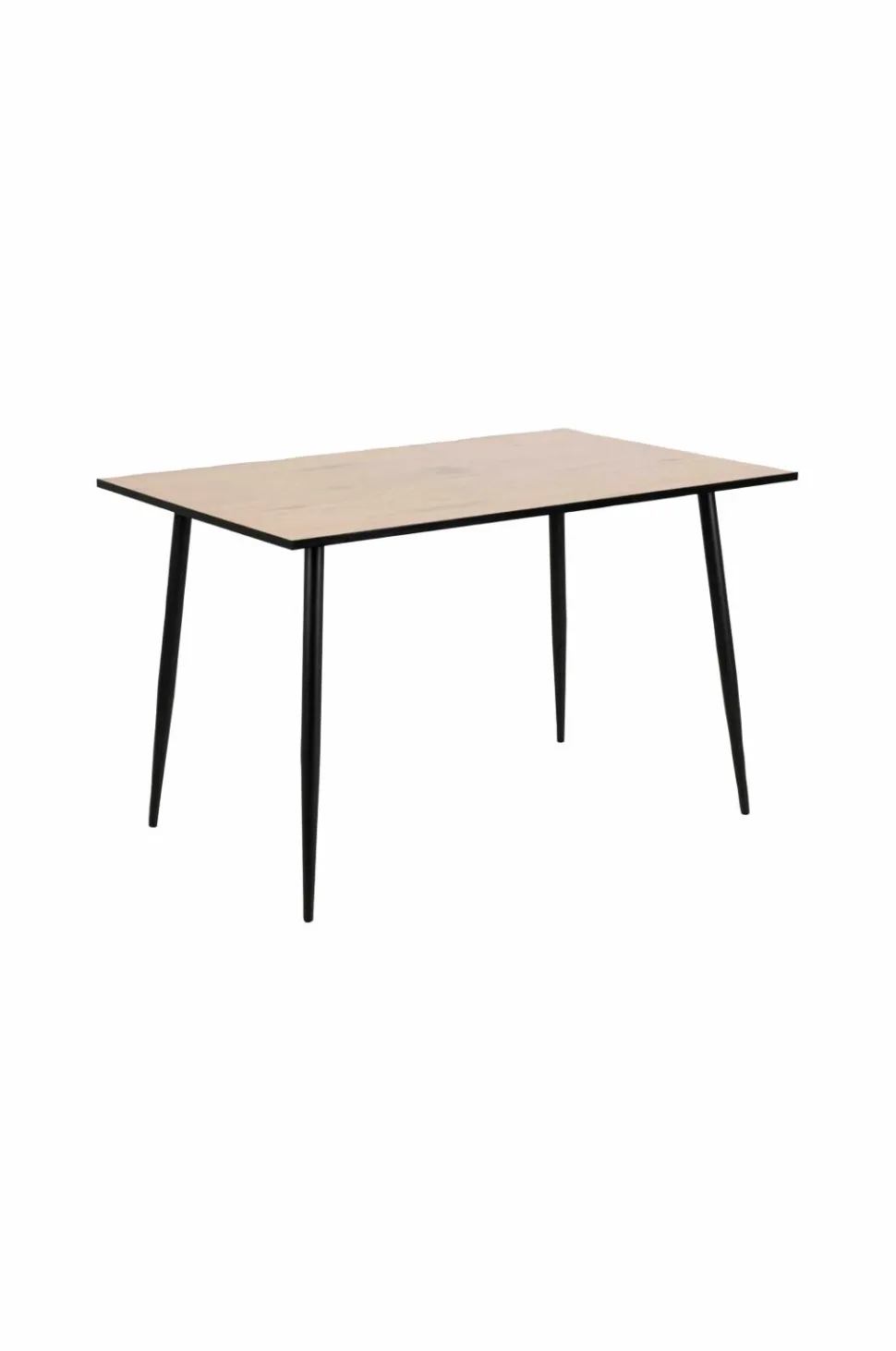 Dette spisestue-sæt til 4 personer indbyder til hyggelige stunder i spisestuen med sit tiltalende design. Det rektangulære spisebord giver et moderne udtryk. Det er beklædt med en nemme at vedligeholde overflade i eg-look og står på koniske stålben. Med 4 polstrede stole med bløde, flydende linjer er det et perfekt match til hverdagsbrug.