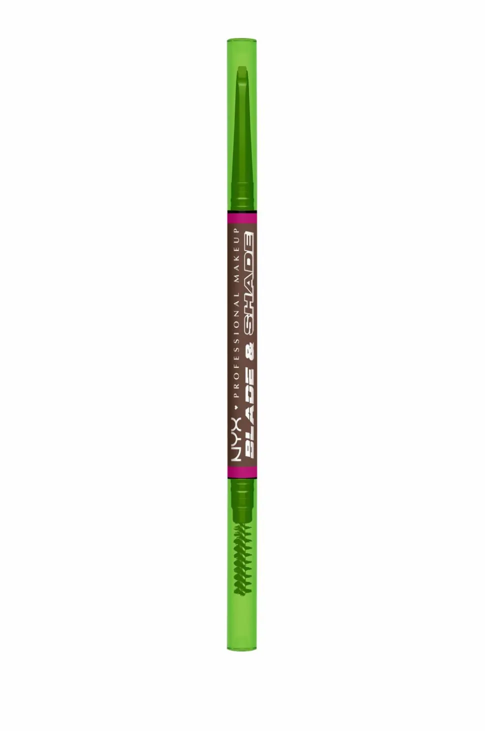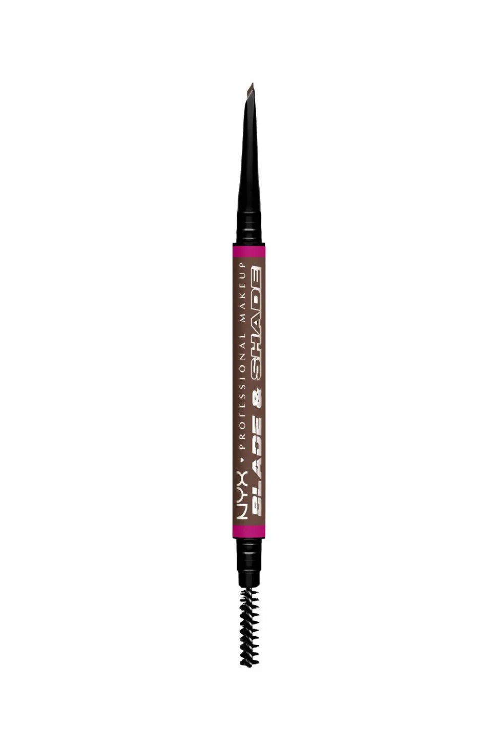 Blade & Shade er vores første øjenbrynsblyant med både skarp og flad spids for præcis optegning og naturlig skygge af brynene. Tegn små, nano-tynde streger, vend blyanten og børst for at skabe et look der er inspireret af microblading. Holder i op til 16 timer. Findes i mange nuancer. Tværer ikke ud og smitter ikke af.