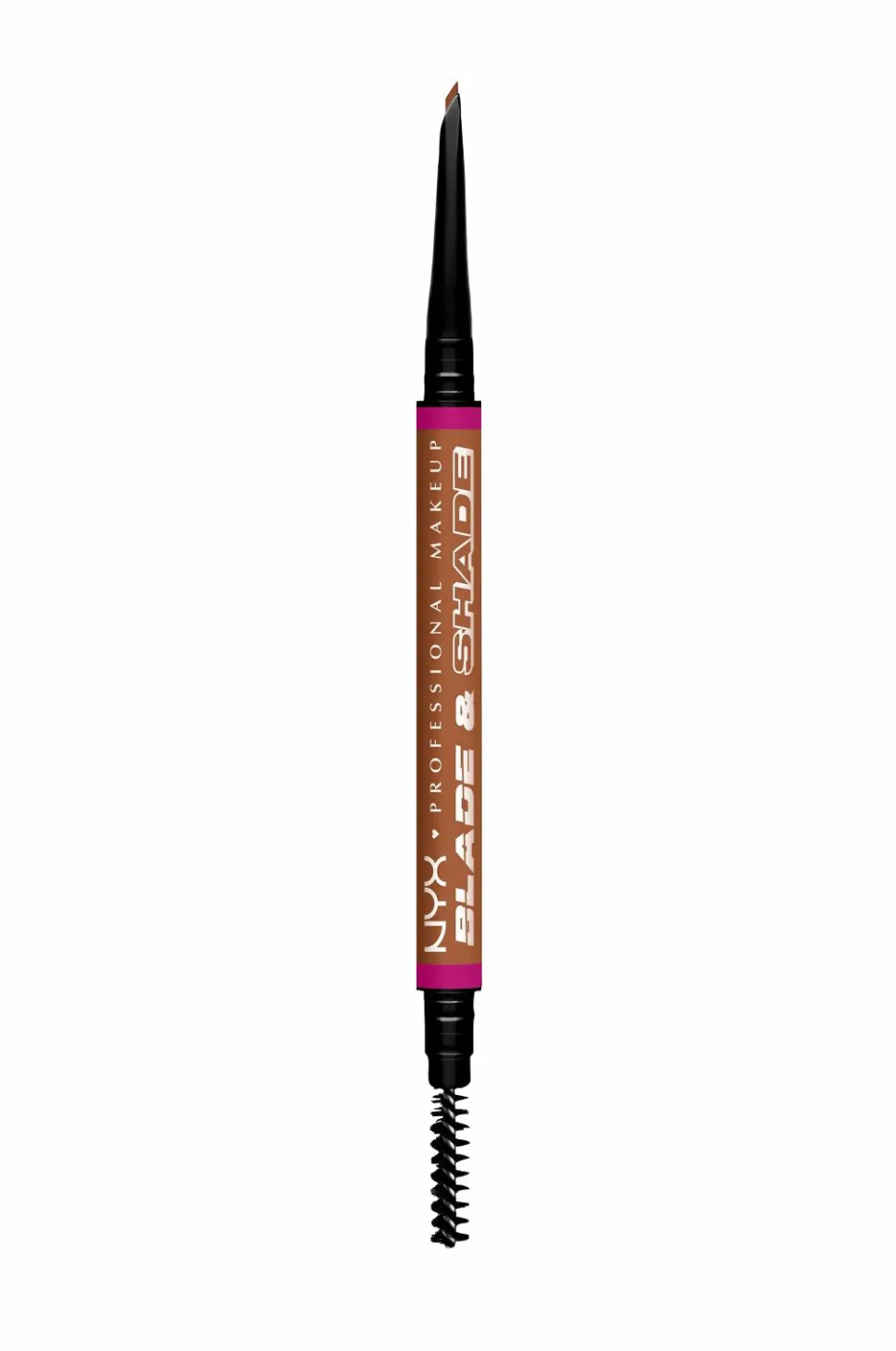Blade & Shade er vores første øjenbrynsblyant med både skarp og flad spids for præcis optegning og naturlig skygge af brynene. Tegn små, nano-tynde streger, vend blyanten og børst for at skabe et look der er inspireret af microblading. Holder i op til 16 timer. Findes i mange nuancer. Tværer ikke ud og smitter ikke af.