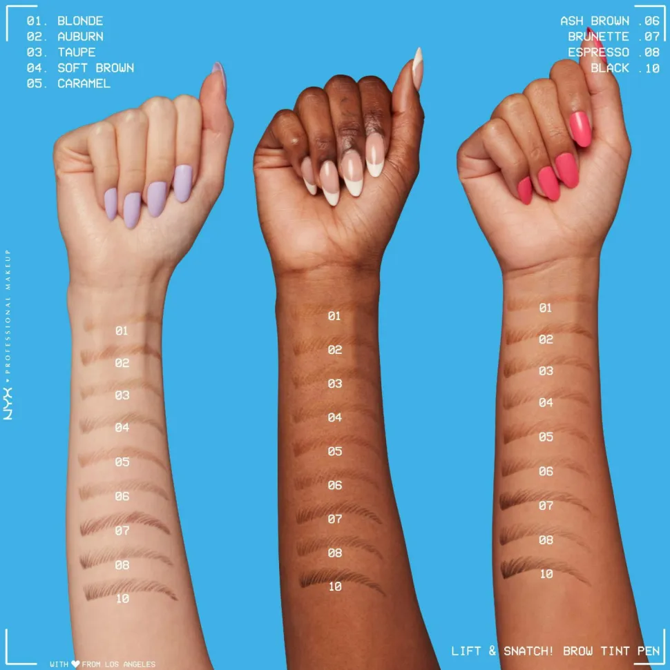 Få en løftet øyenbrynslook ved hjelp av NYX Professional Lift & Snatch Brow Tint Pen! Den fleksible brynspennen med mikrobørste lar deg skape både tynne og tykke streker som ligner på hår. Fargene kan bygges på og lar deg gå fra en supernaturlig til en perfekt markert look med bare få strøk! Skap fine bryn fra nesten ingenting, fyll ut glisne områder eller bygg enda mer på dine allerede perfekte bryn. Vegansk formel*