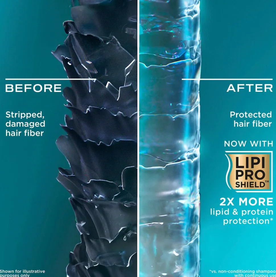 Den innovative Lipi Pro Shield-teknologi giver dobbelt beskyttelse af hårets protein- og lipidbarriere, hvilket reducerer risikoen for krus og spaltede spidser. Resultatet? Hår, der ser sundere, fyldigere og mere levende ud – allerede ved første vask. For de bedste resultater, brug den sammen med Ogx Rescue Fusions Hyaluronic Acid & Pro-vitamin B5 Shampoo.