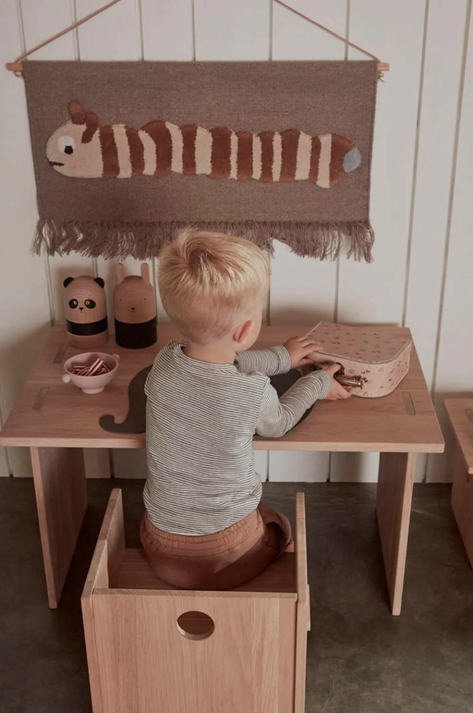 Med det enkle og minimalistiske design vil det lille bord være et funktionelt og pænt element på børneværelset. Bordet er produceret i Europa i massivt egetræ. Kombiner bænken med resten af møblerne fra arca serien. Her finder du bl.a. en bænk og en skammel, som alle er børnemøbler i slidstærkt og funktionelt materiale. Bordet leveres fladpakket og er nemt at samle. Træet er behandlet med en hvidpigmenteret olie. For at opnå en lang levetid på træmøblerne anbefaler vi, at du vedligeholder træmøblerne med opfølgende behandlinger.