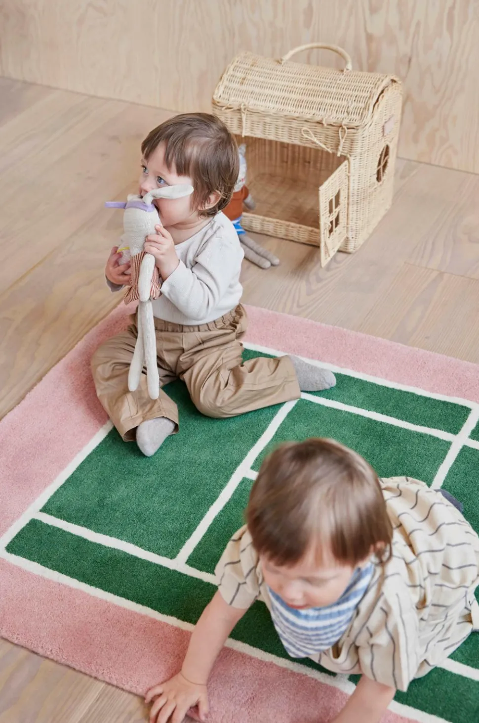 Tæppet tennis, der er en del af tennis -kollektionen, har realistiske tennis -farver, der giver en sporty stemning. Tæppet er fremstillet af en uld- og bomuldsblanding og giver en blød fornemmelse under fødderne, så dit barn får varme og komfort, når det leger, kravler eller slapper af.