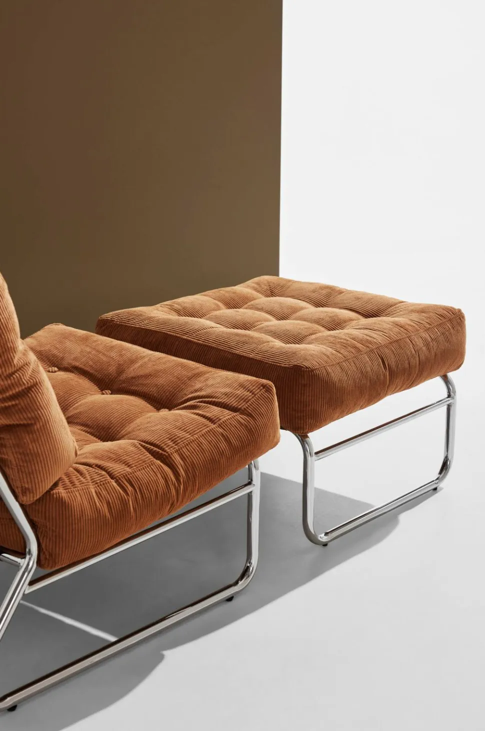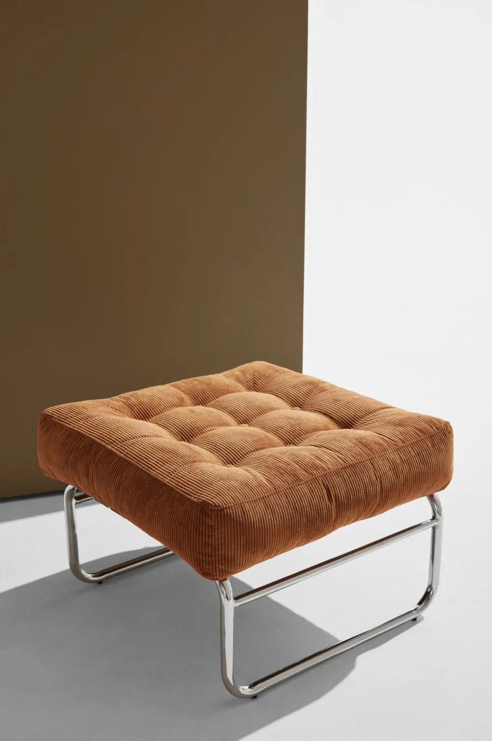 Luca-fodskamlen fra Pastill leder tankerne hen på 70’erne. Det forkromede jernstel og -ben kombineret med fløjlspolstringen giver dig den nostalgiske følelse – et elegant valg til dit hjem.