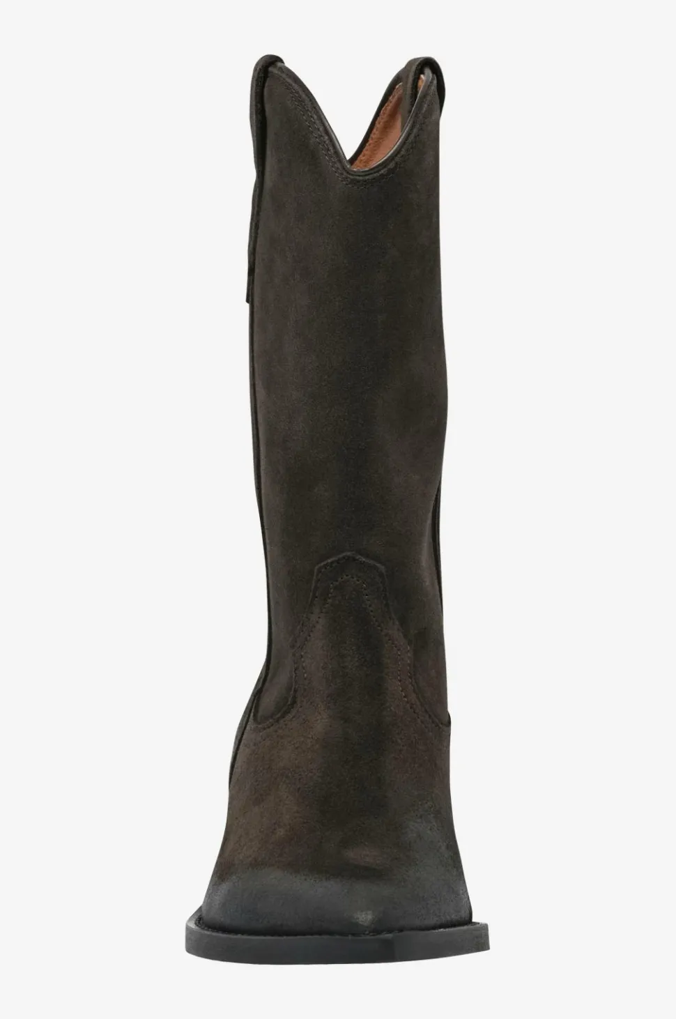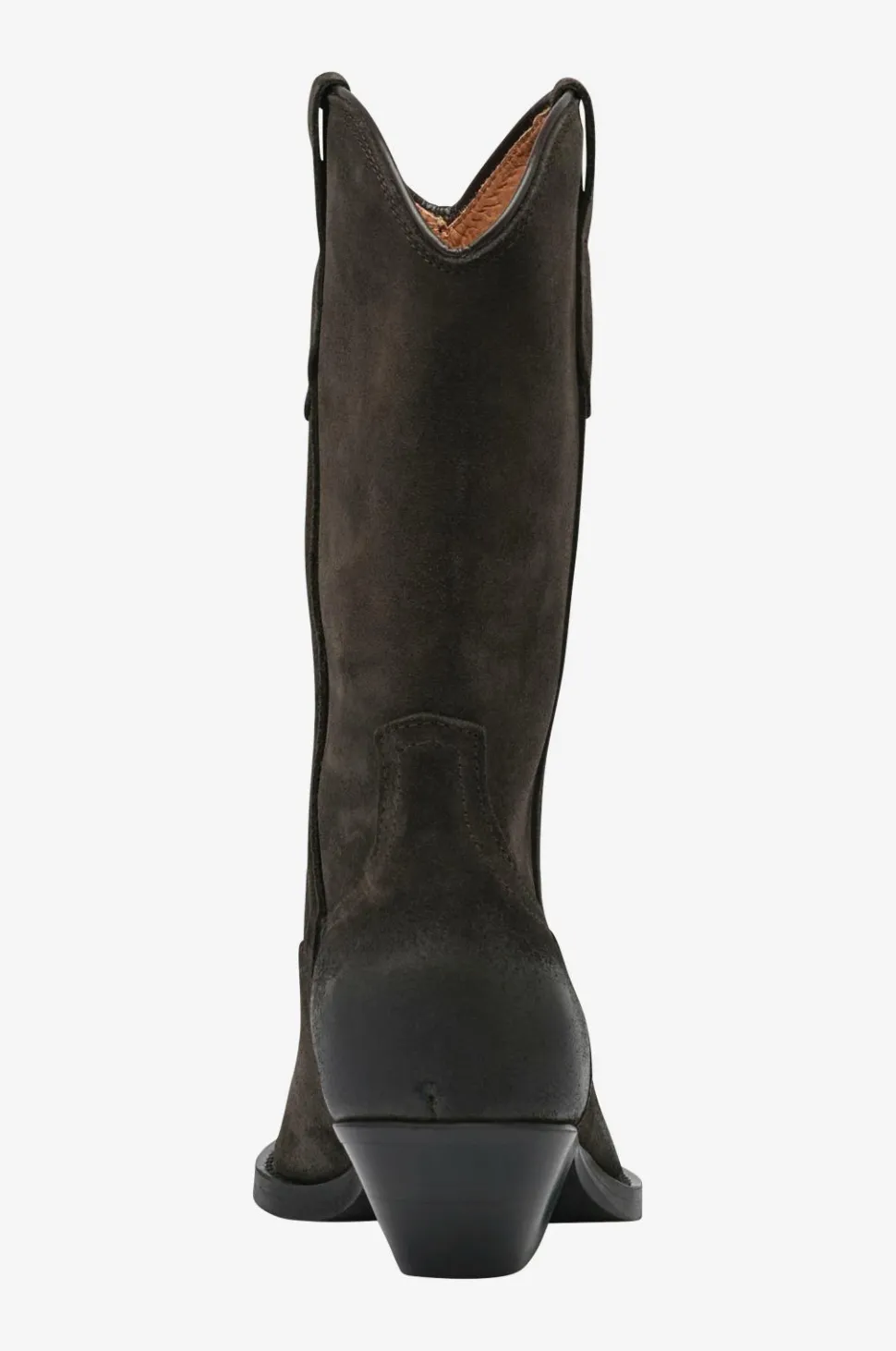 • Cowboystøvler i ruskind med afrundet kant på toppen