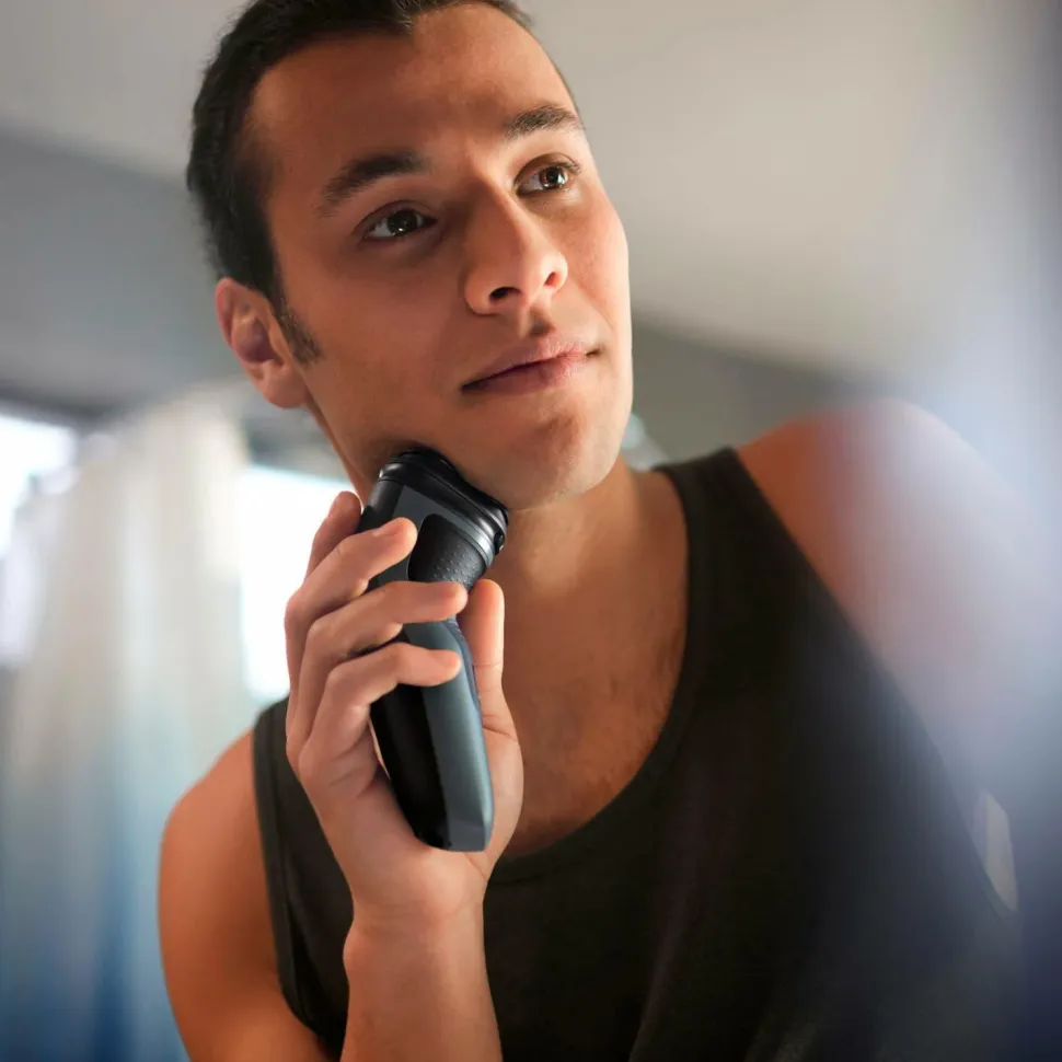 Philips elektriske barbermaskine i 1000-serien giver dig en hurtig og tæt barbering. Barbermaskinen er fuldt vaskbar og har 27 selvslibende PowerCut-blade, hvilket gør den nem at bruge sikkert. Barberhovederne kan bøjes i fire retninger og følge ansigtet for en behagelig barbering.