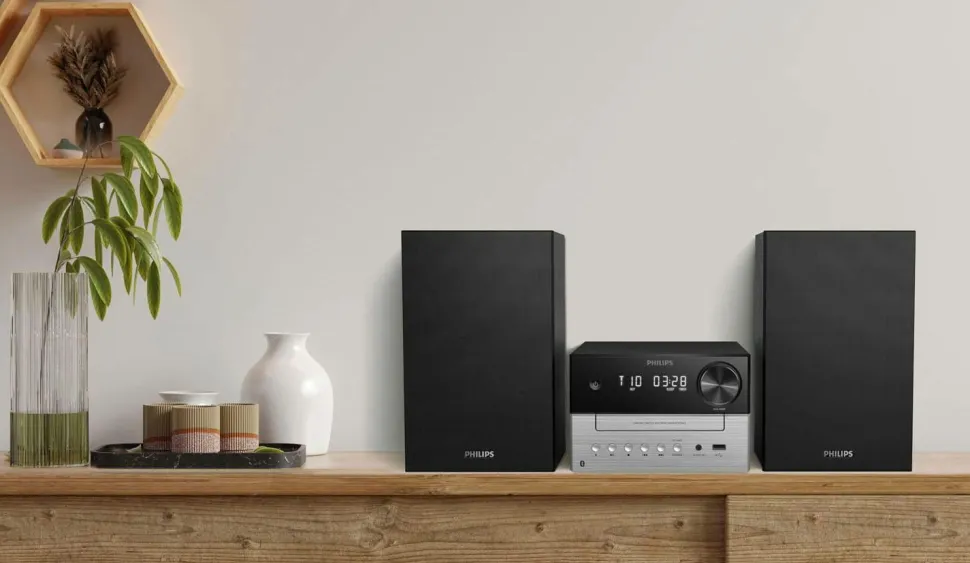 – Mikromusiksystem med Bluetooth®, CD, MP3-CD, USB og FM-radio.