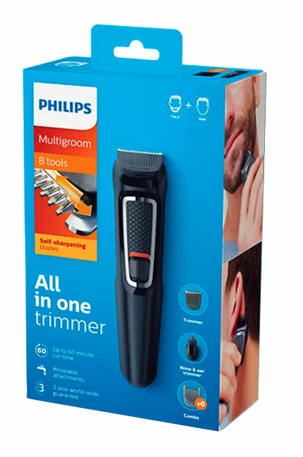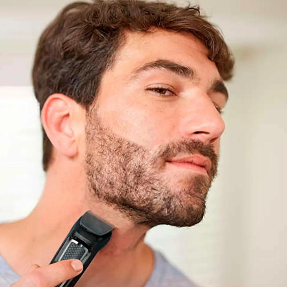 Philips 8-i-1 Multitrimmer gør det nemt at føle sig velplejet. De forskellige tilbehør giver dig alle muligheder for at skabe et velplejet look. Alt fra at trimme skæg, næse- eller ørehår til at klippe håret derhjemme. Du kan også nemt gøre dine bakkenbarter og din frisure flottere. Alle Philips Multigroomers er vedligeholdelsesfrie med selvslibende skærelement og du behøver aldrig at oliere bladene.
