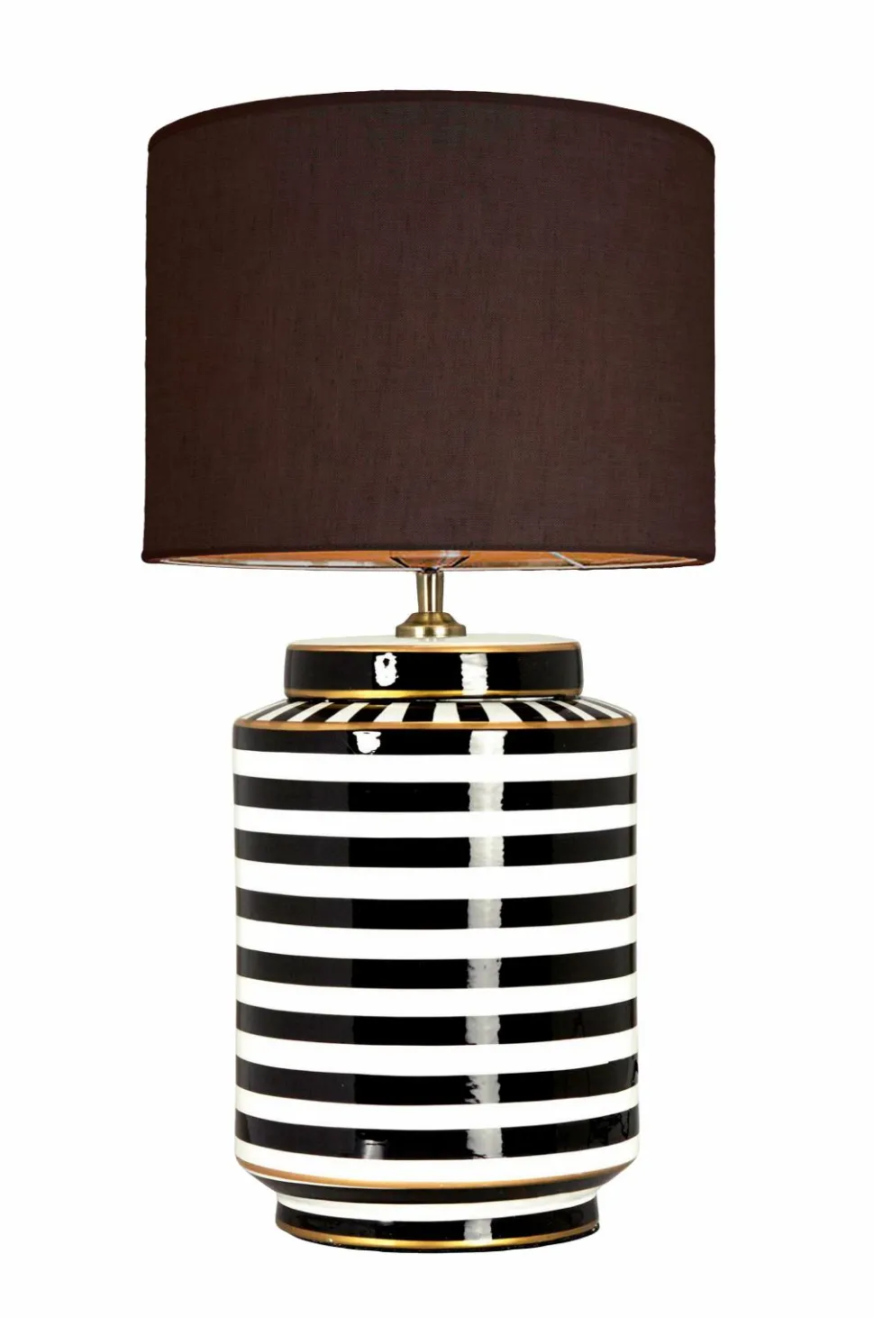 En slående bordlampe med tidløs elegance – denne stribede keramikfod med et gyldent strejf giver et dristigt, men raffineret art deco-flair til ethvert rum. Den grafiske kontrast og skulpturelle form gør den lige så meget til et dekorativt objekt som en lyskilde, og den er ideel til indretninger, der hylder både historie og personlighed. Lampen måler 63 cm i højden inklusive skærmen, og diameteren på den cylinderformede skærm er 35 cm i diameter, hvilket giver en afbalanceret silhuet, der fungerer smukt på et sidebord, en konsol eller i vindueskarmen. Den har en e27-fatning (maks. 40w) og leveres med en 180 cm lang sort tekstilledning med europæisk stik. Afbryderen er praktisk placeret 35 cm fra basen. Lyskilden sælges separat. En lampe, der gør indtryk – raffineret, grafisk og fuld af karakter.