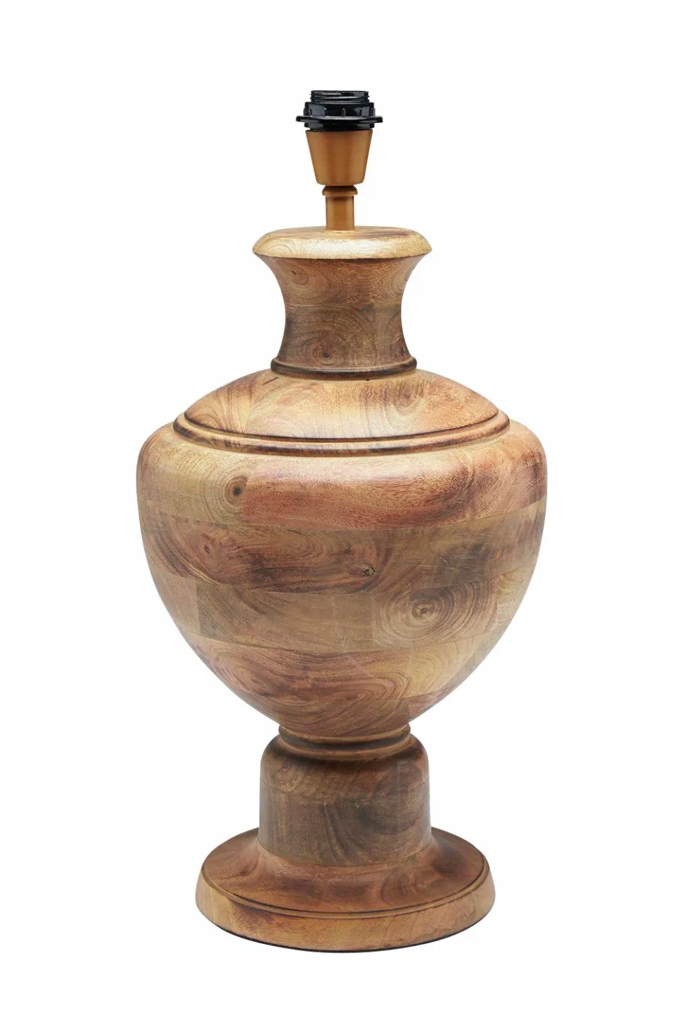 Lampefod Alma, klassisk krukkeformet i mangotræ. Højde 54 cm, bredde 25 cm og dybde 25 cm. 1,8 meter plastledning med strømafbryder, ca. 30 cm fra pæren. E27-sokkel. Maks. 40 W. IP20. Pære medfølger ikke. Passer med en skærm som er 35 cm i diameter.