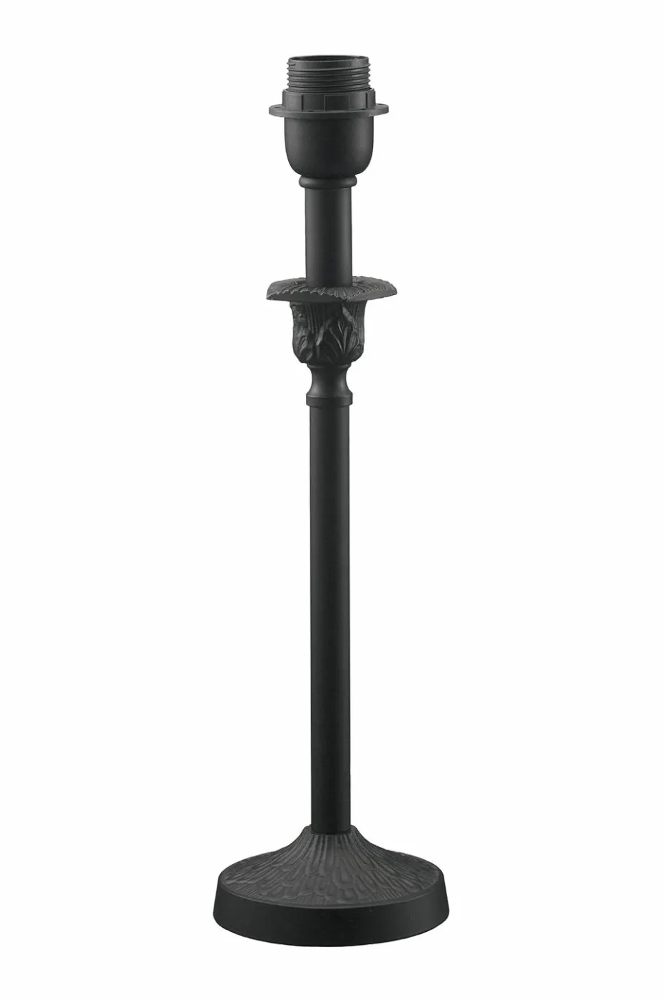 Lampefod Florita i metal med smukke detaljer. Inspiration fra havens spirende blomsterknopper og blade. Foden er støbt med blomsterbladstruktur og foroven en støbt blomsterknop som dekoration. Højde 41 cm. Fod: diameter 11 cm. 1,5 meter plastledning med strømafbryder. E27. Maks. 40 W. IP20. Passer med lampeskærm op til ca. 20 cm i diameter. Pære medfølger ikke.