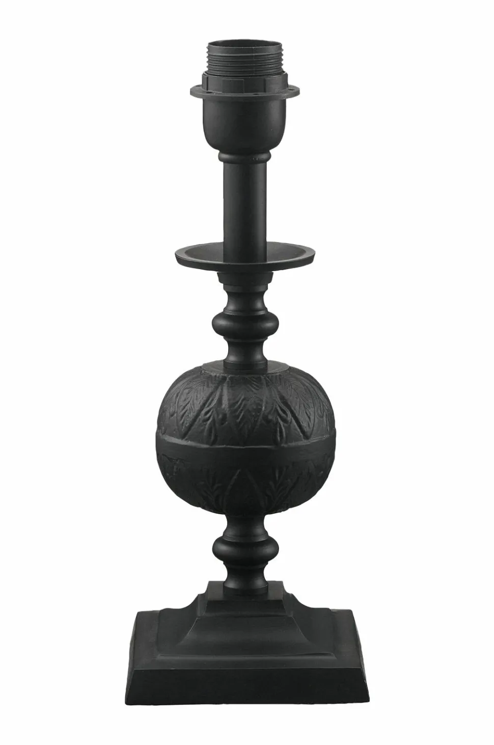 Lampefod Flory i metal, en klassisk lampe med kugler som er støbt med en bladstruktur. Inspireret af havens blade. Højde 45 cm, fodens bredde 12,5 cm og dybde 12,5 cm. 1,6 meter plastledning med strømafbryder. E27. Maks. 40 W. IP20. Passer med lampeskærm op til ca. 20 cm i diameter. Pære medfølger ikke.